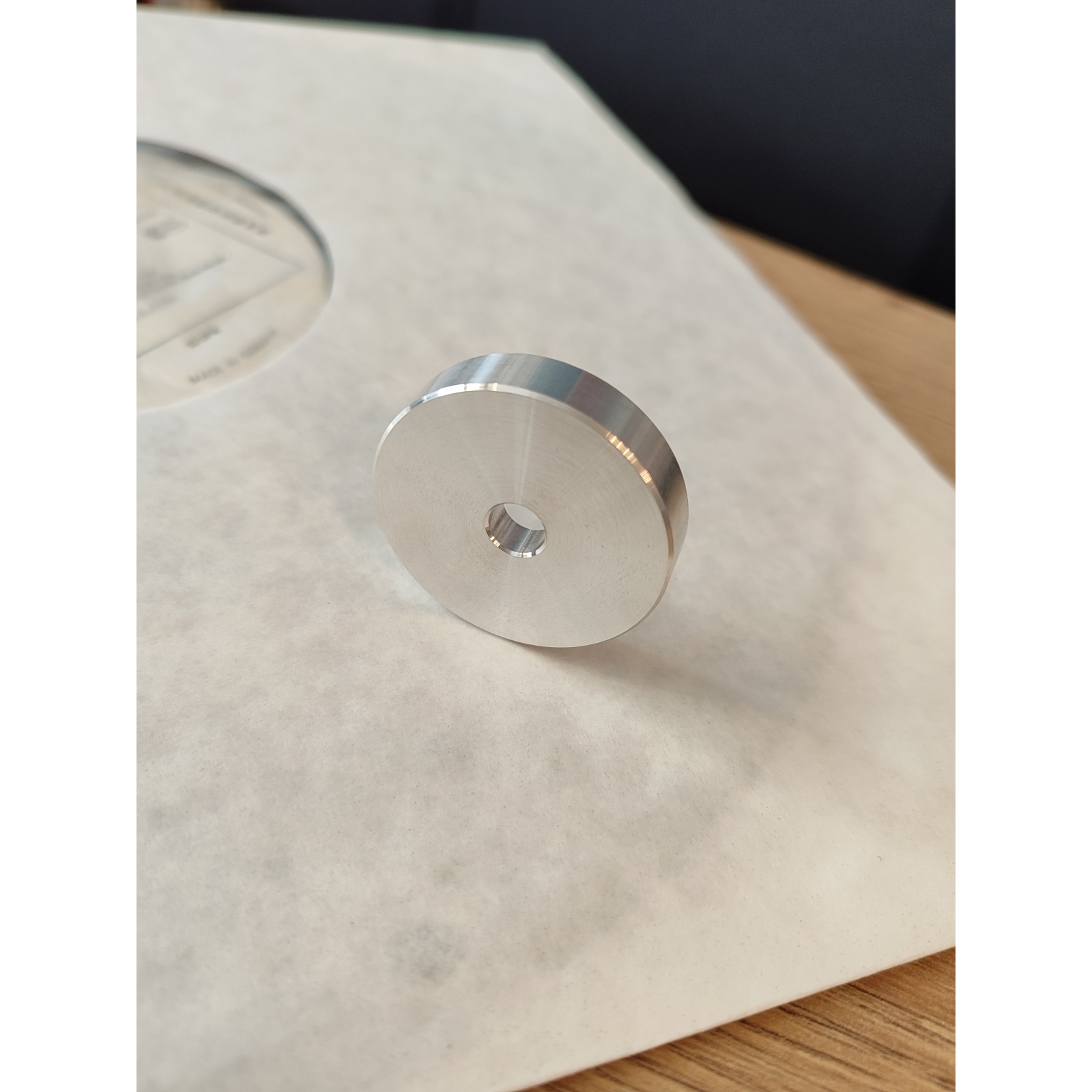 Adattatore professionale per 45 giri in alluminio. Pratico e stabile.