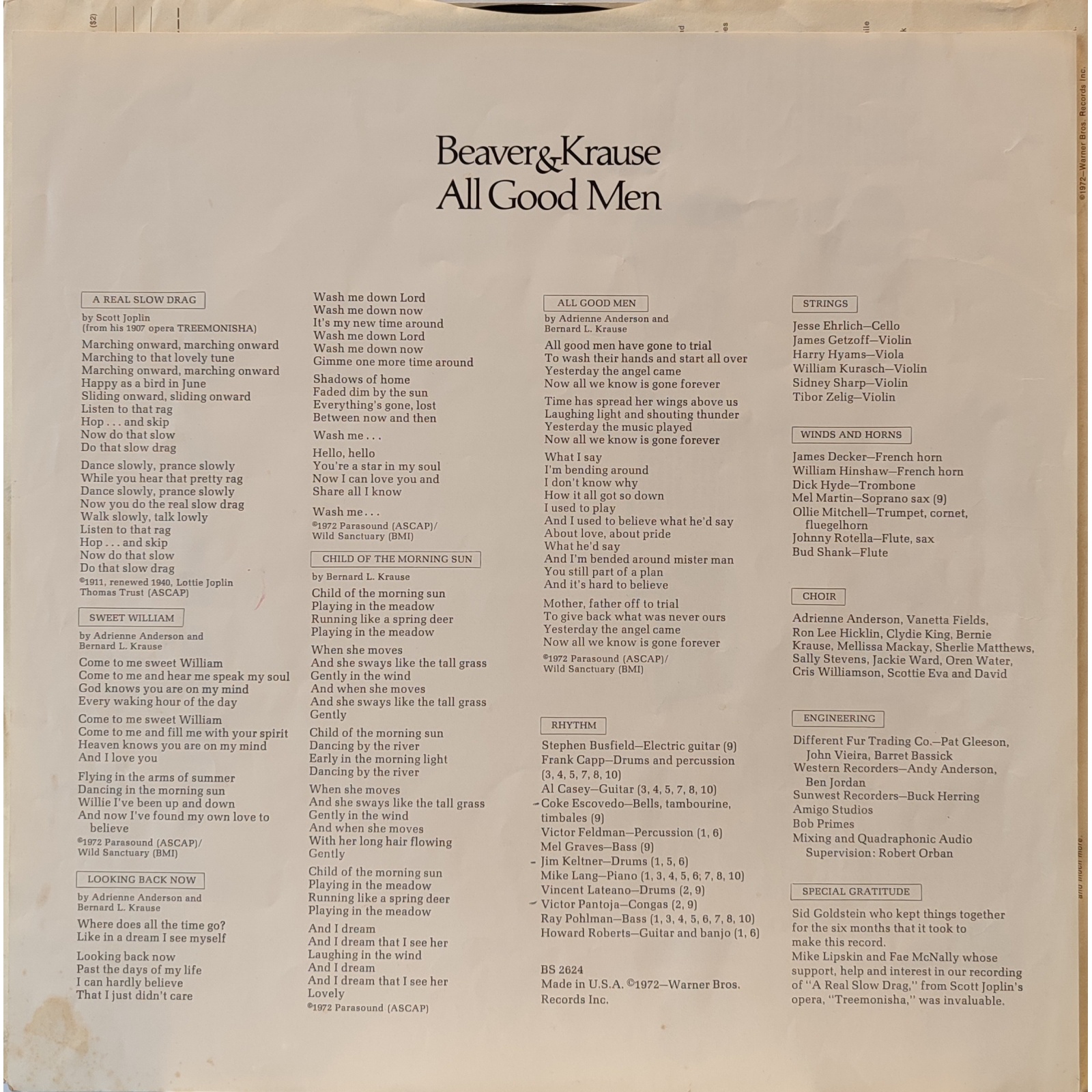 Prima edizione americana, datata 1972, in vinile di seconda mano dell'album "All good man" del duo elettronico Beaver & Krause.