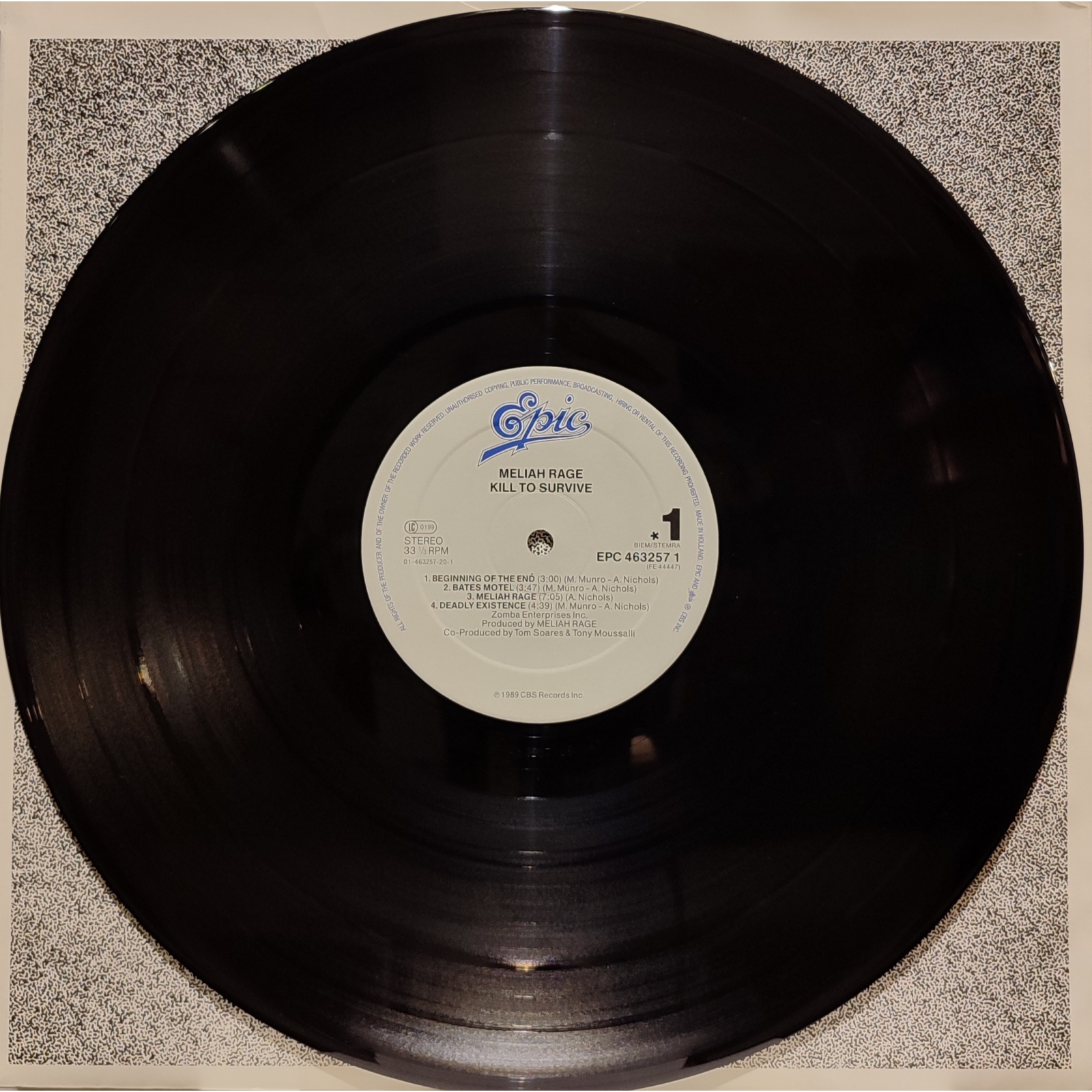Datato 1989, etichetta Epic, comprensivo di inner sleeve originale con testi.
