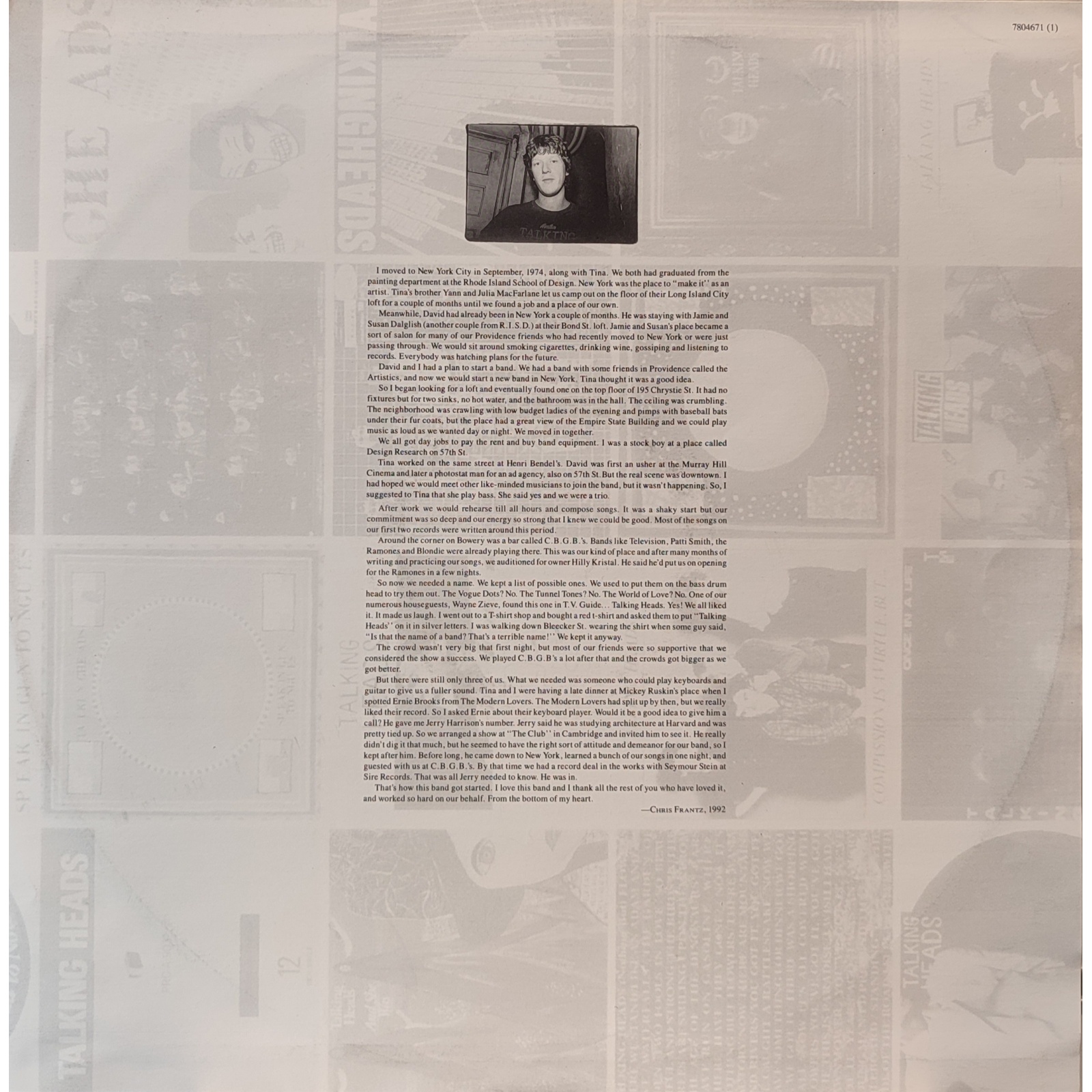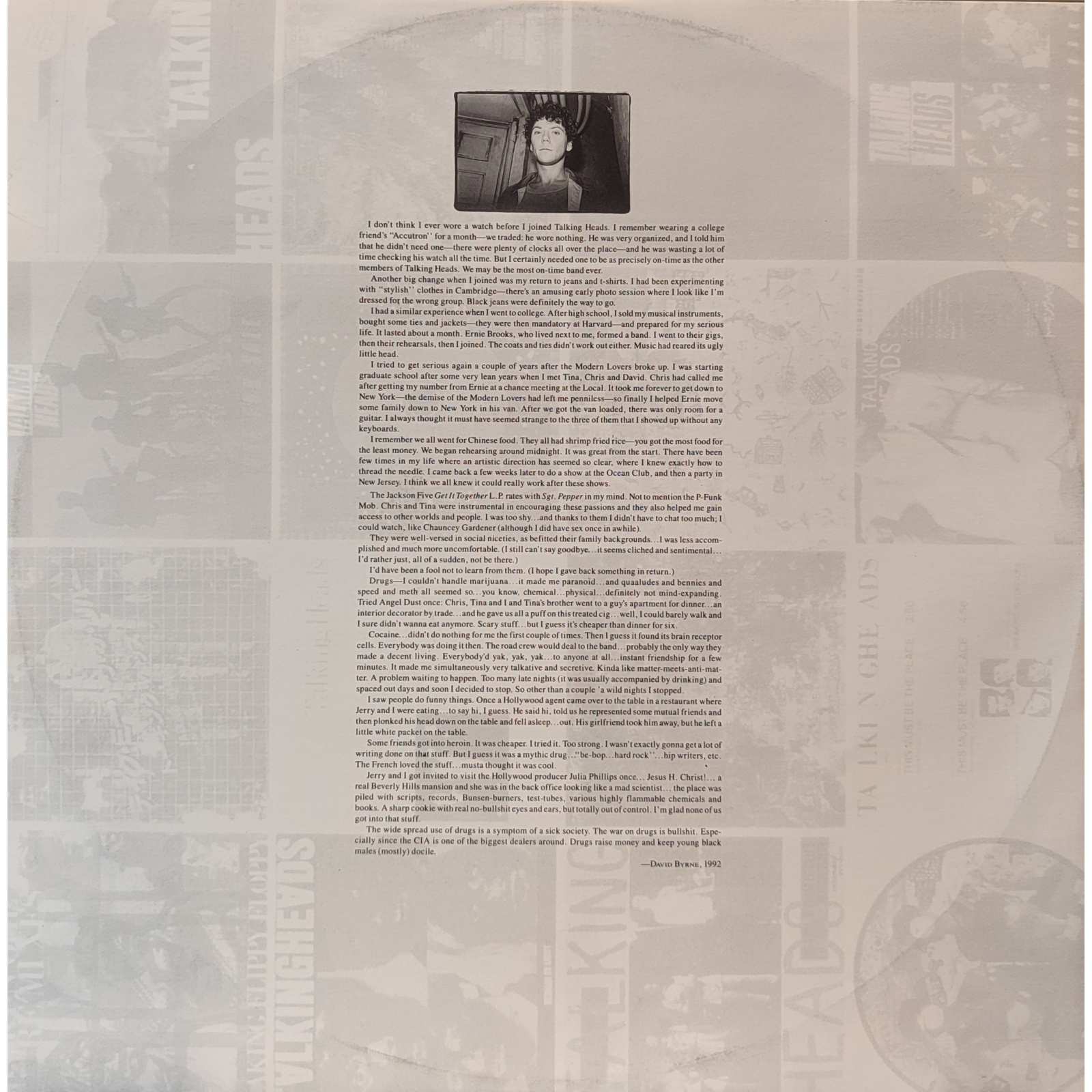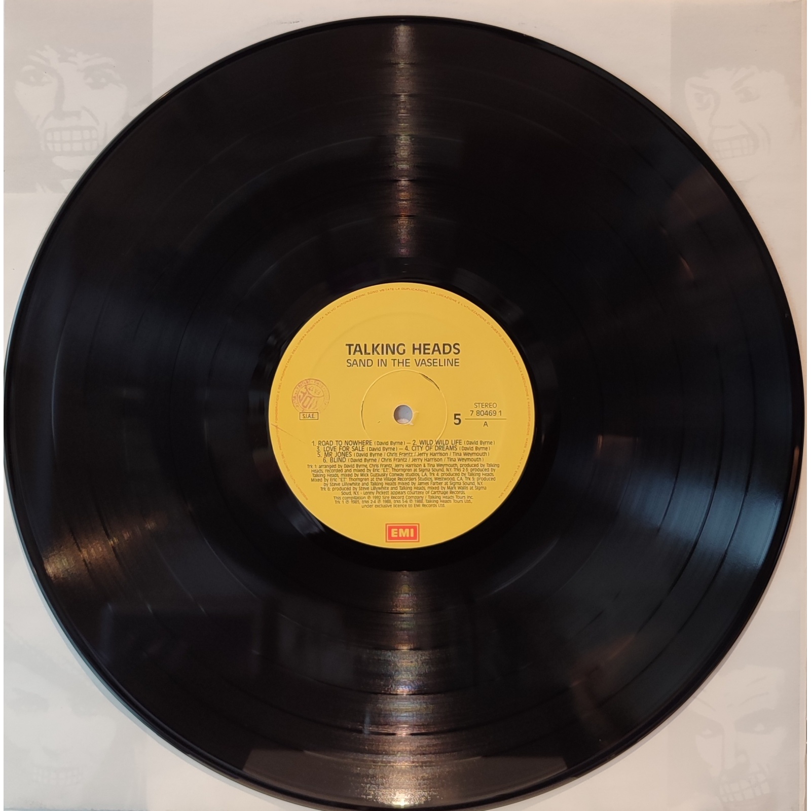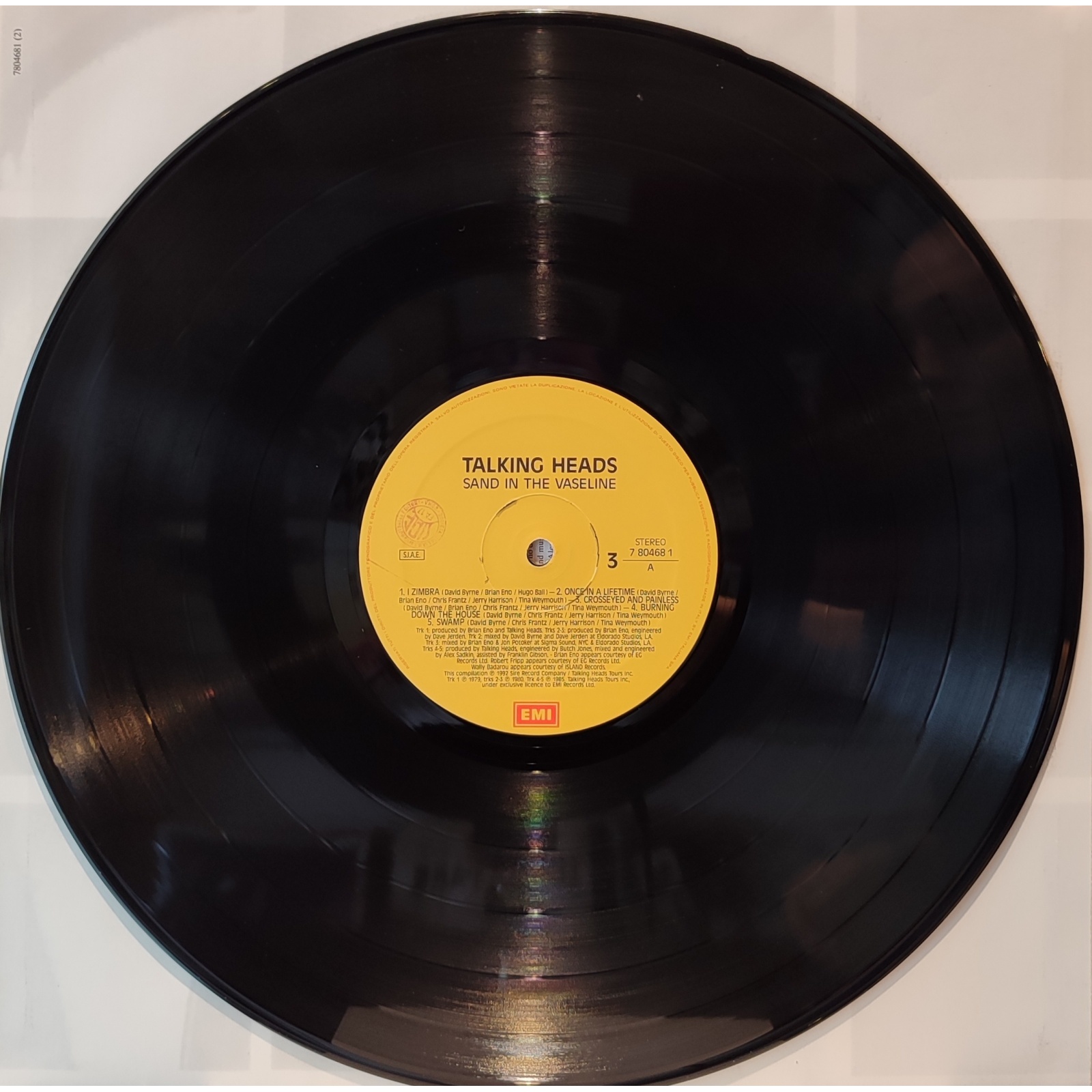Perfetta prima edizione italiana, in vinile di seconda mano, della raccolta "Sand in the vaseline: popular favorites 1976 - 1992" del gruppo rock statunitense Talking Heads.