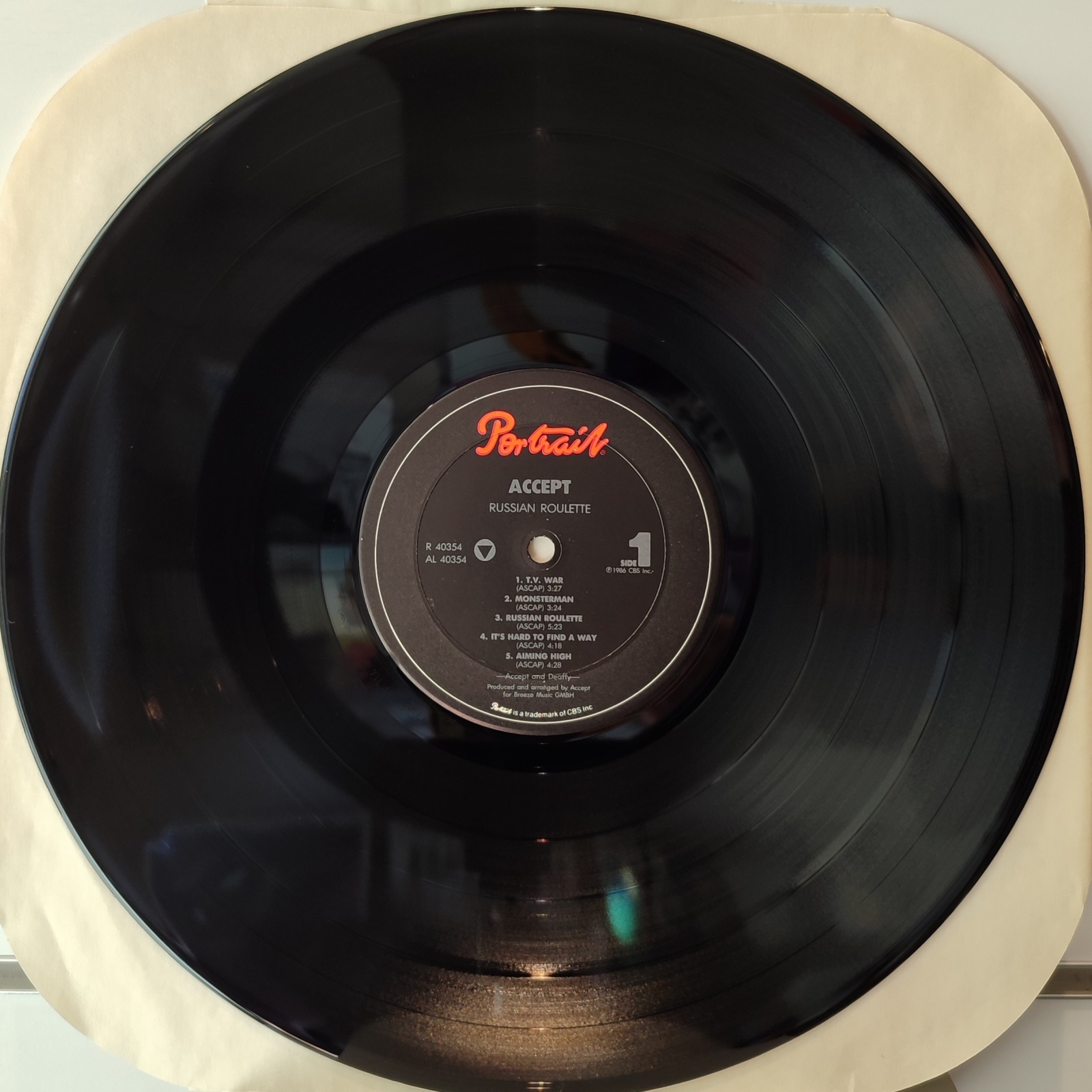 Perfetta prima edizione americana, in vinile di seconda mano, dell'album "Russian Roulette" del gruppo heavy metal tedesco Accept.