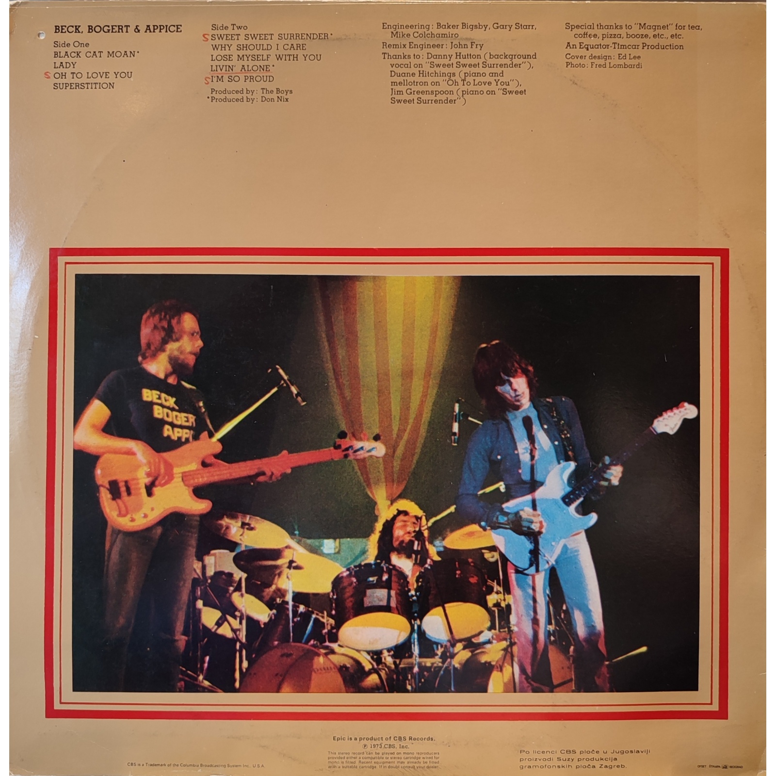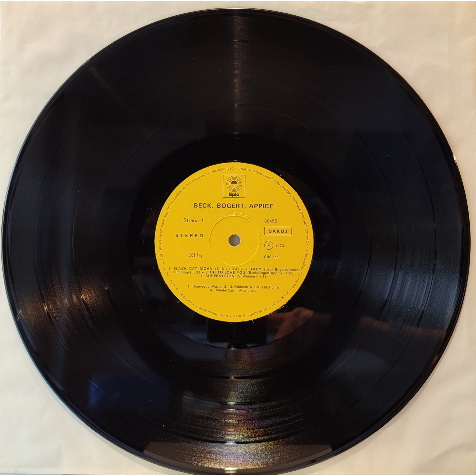 Prima edizione yugoslava in vinile di seconda mano, datata 1980, dell'album "Beck, Bogert & Appice".