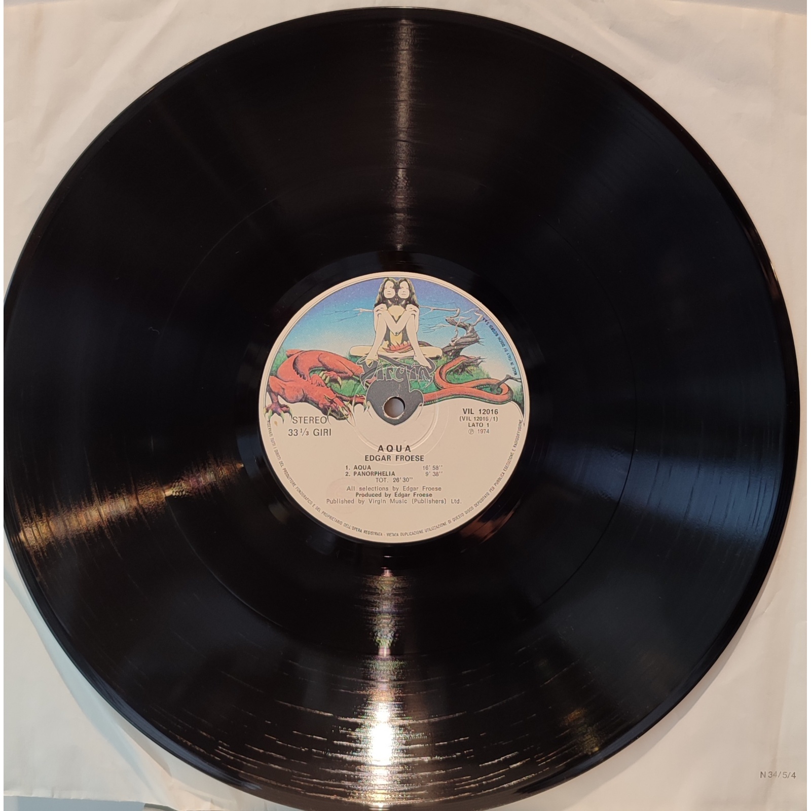 Prima edizione italiana, in vinile di seconda mano, del primo album da solista di Edgar Froese, fondatore dei Tangerine Dream,"Aqua".