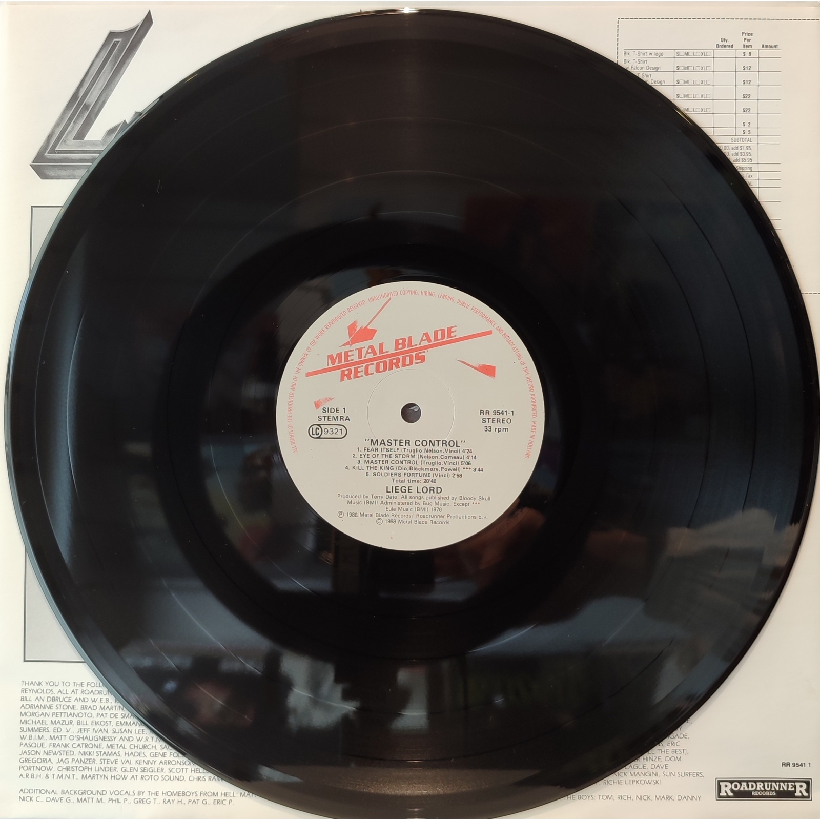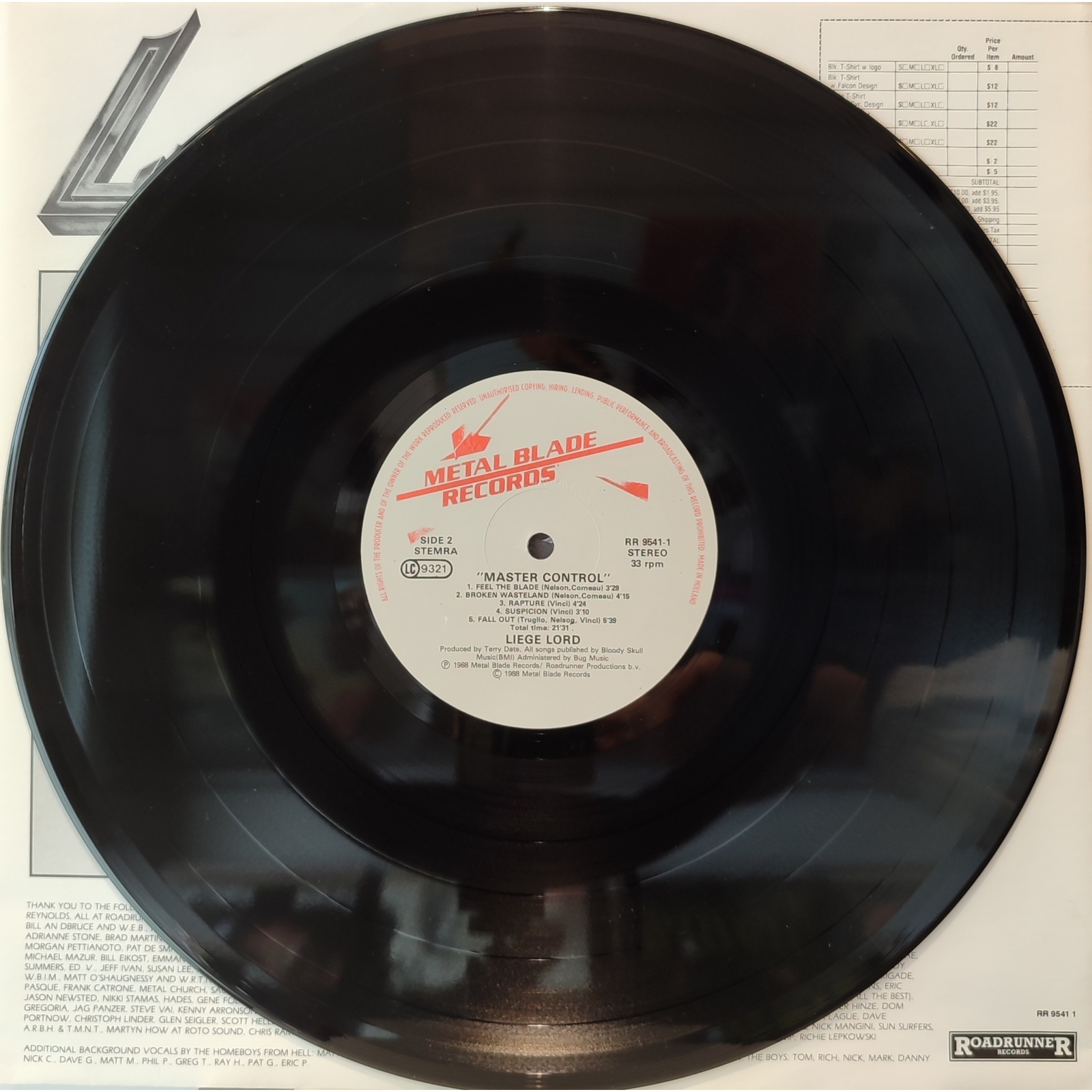 Prima edizione olandese, in vinile di seconda mano, del terzo album in studio del gruppo heavy metal statunitense Liege Lord,"Master control".