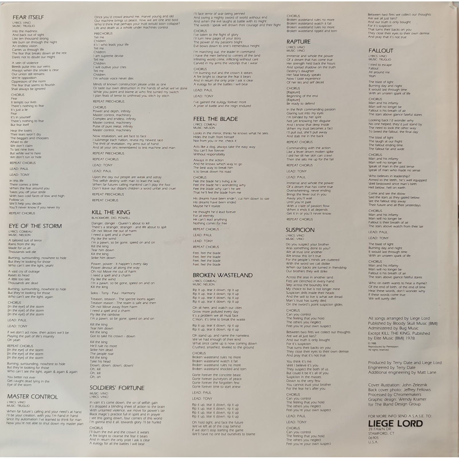Datato 1988, etichetta Metal Blade Records, comprensivo di inner sleeve originale con testi e foto.