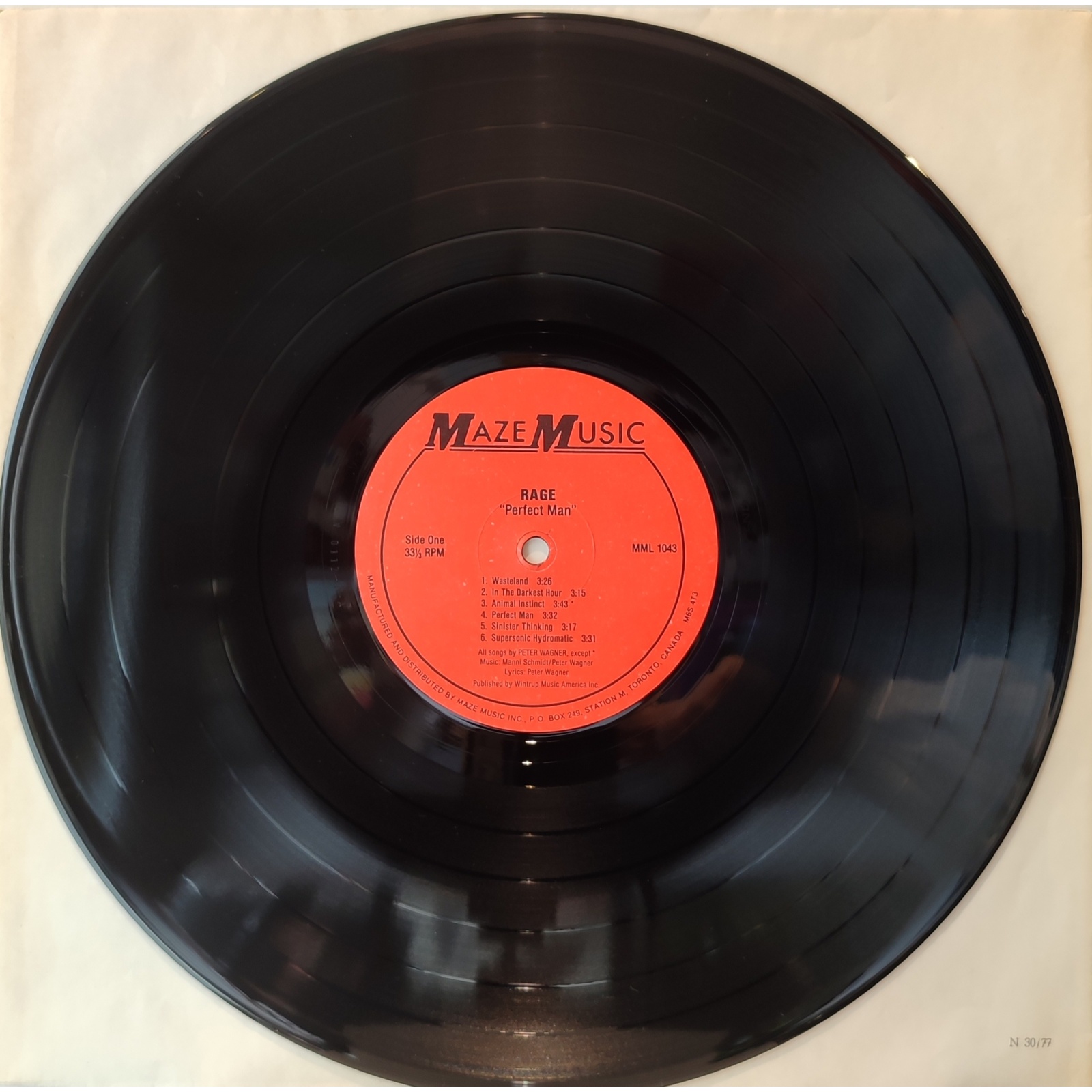 Prima edizione canadese, in vinile di seconda mano, del terzo album in studio del gruppo power metal tedesco Rage, "Perfect man".