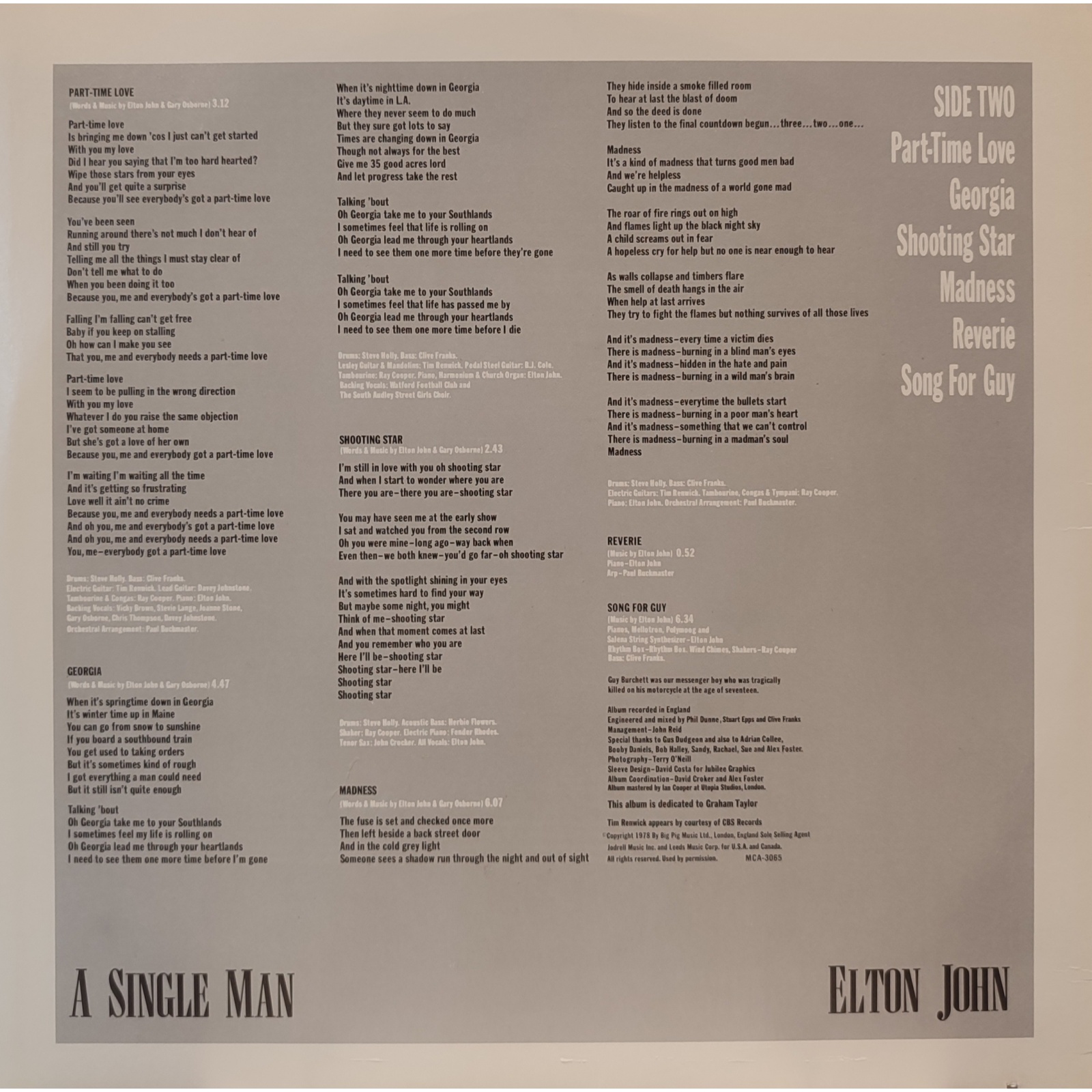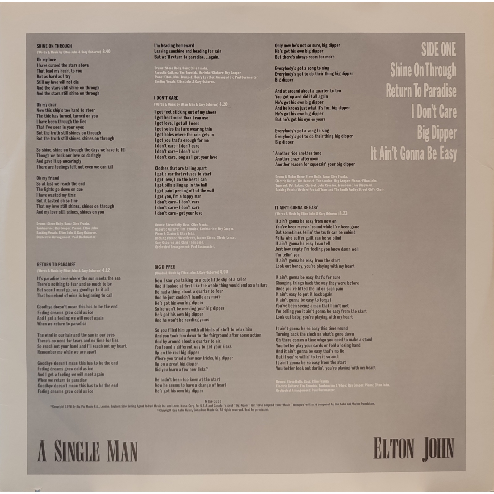 Prima edizione americana, in vinile di seconda mano, dell'album "A single man" del cantautore e pianista inglese Elton John.