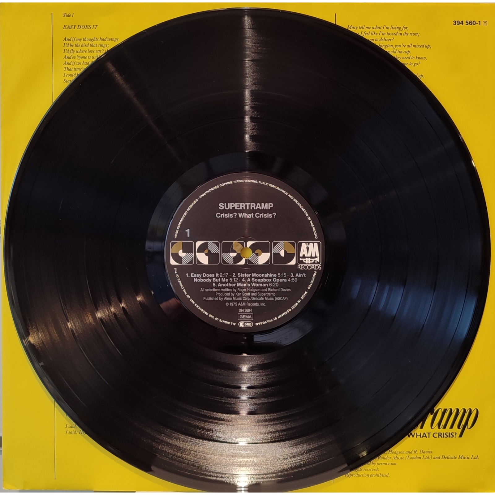 Ristampa tedesca, in vinile di seconda mano, del quarto album in studio del gruppo rock britannico Supertramp,"Crisis? What Crisis?".