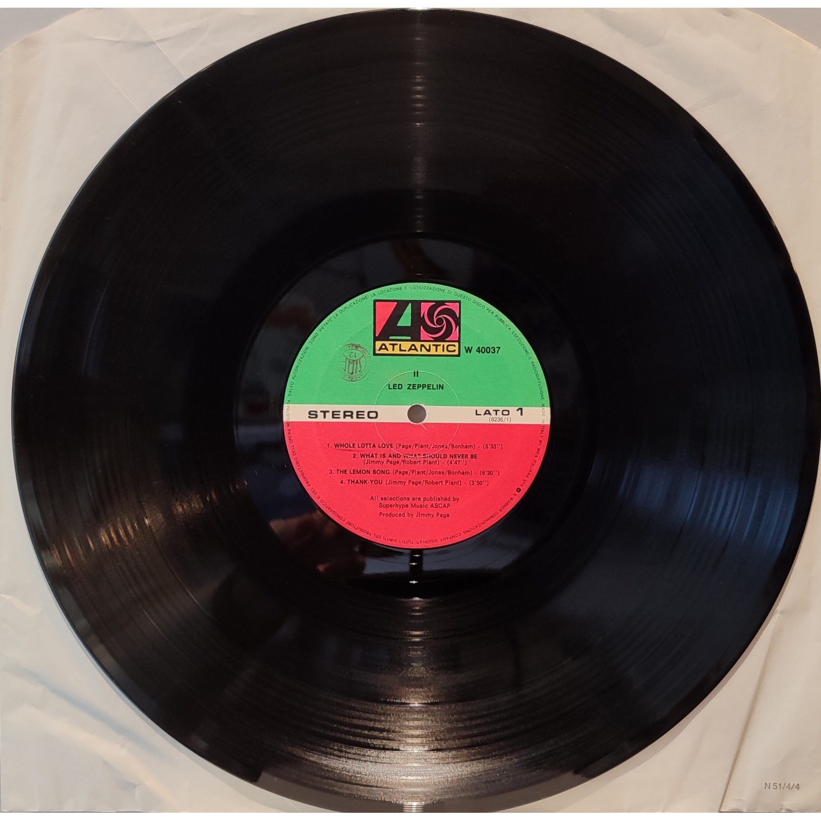 Ristampa italiana, in vinile di seconda mano, del secondo album in studio del gruppo hard rock britannico Led Zeppelin,"Led Zeppelin II".