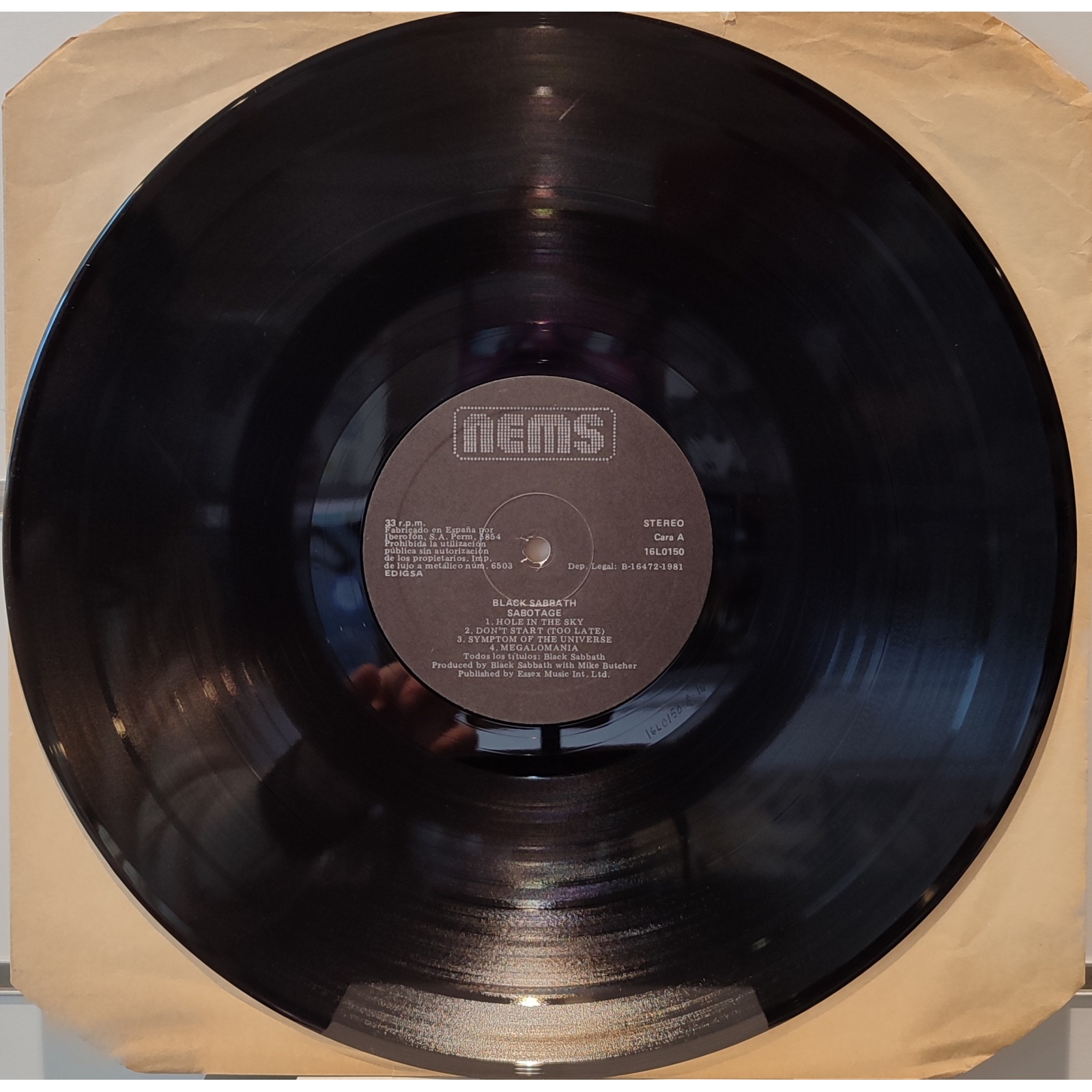 Ristampa spagnola, in vinile di seconda mano, del sesto album in studio del gruppo hard rock britannico Black Sabbath,"Sabotage".