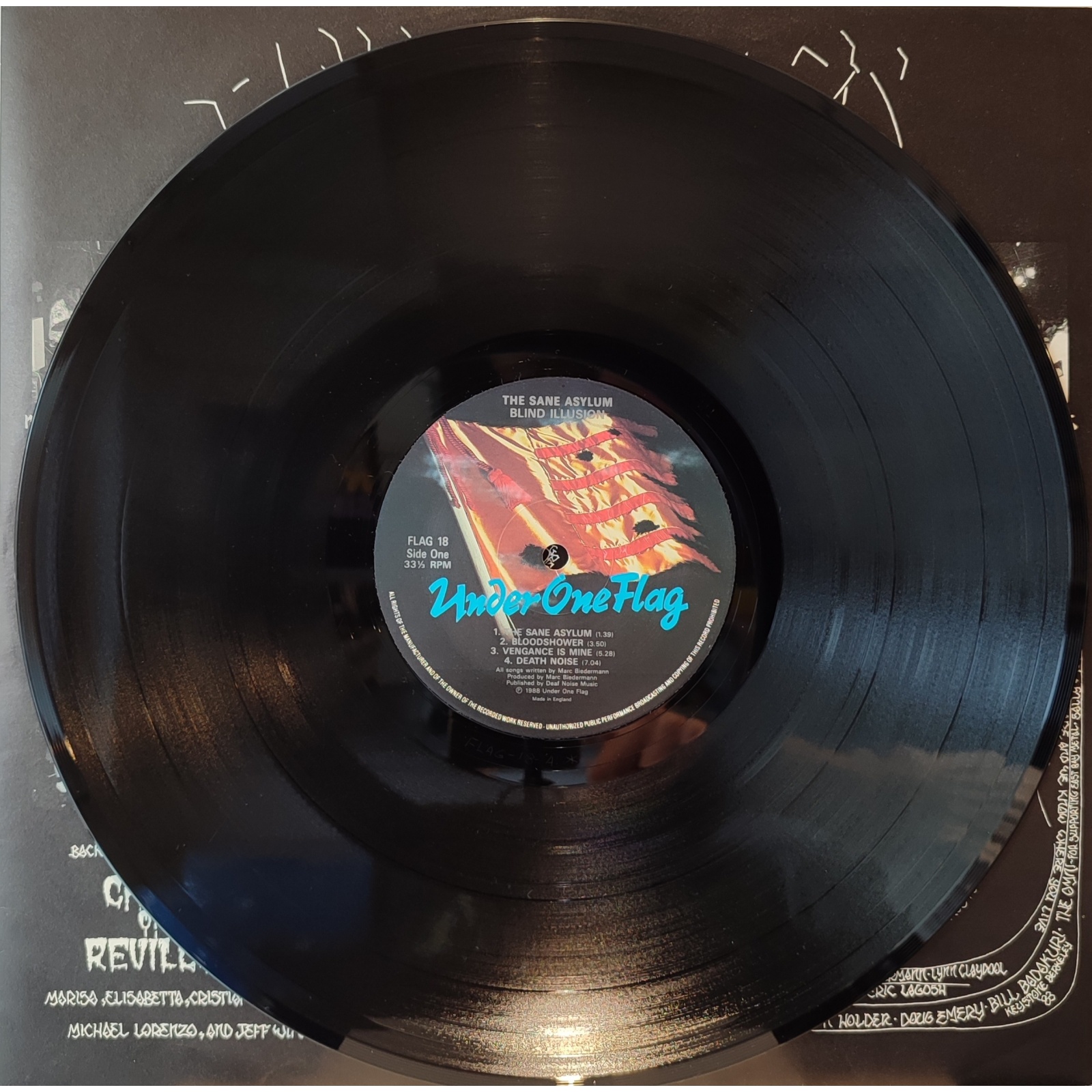Prima edizione inglese, in vinile di seconda mano, del primo album del gruppo heavy metal statunitense Blind Illusion.