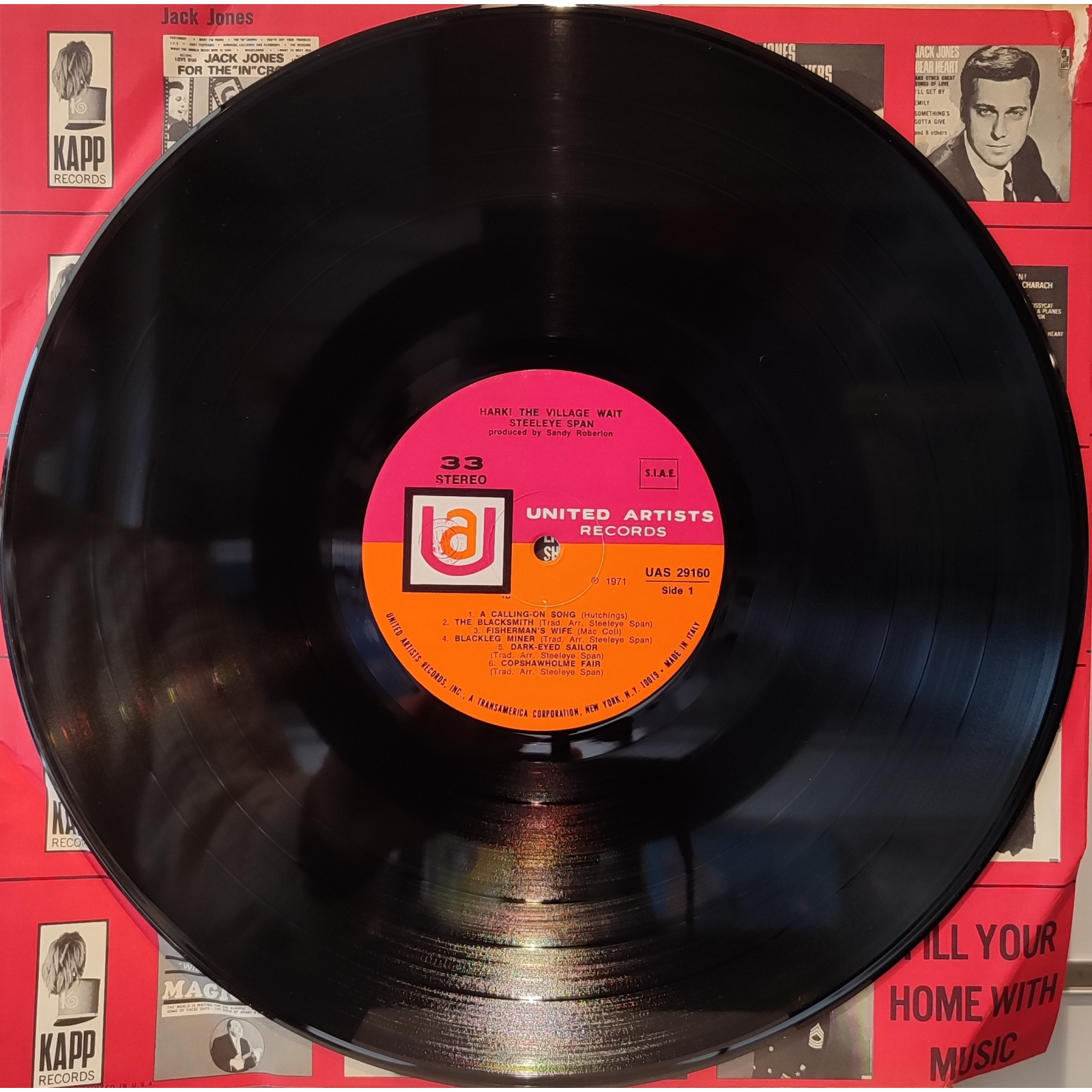 Prima edizione italiana, in vinile di seconda mano, del primo album in studio del gruppo folk rock inglese Steeleye Span,"Hark! The Village wait".