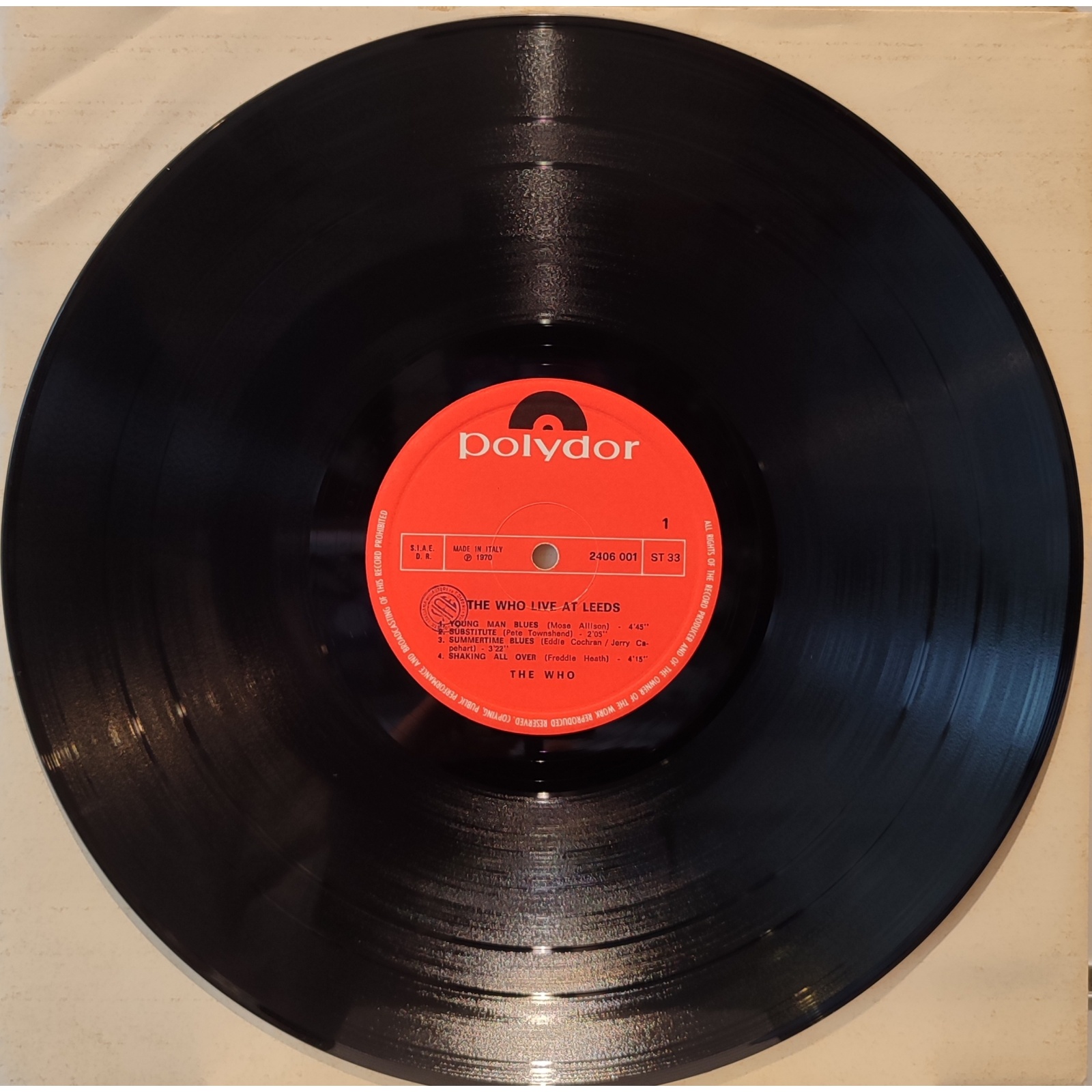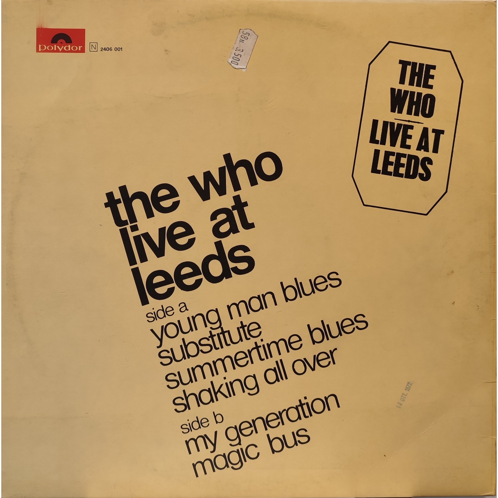 Prima edizione italiana, in vinile di seconda mano, del live "Live at Leeds" del gruppo rock britannico The Who.