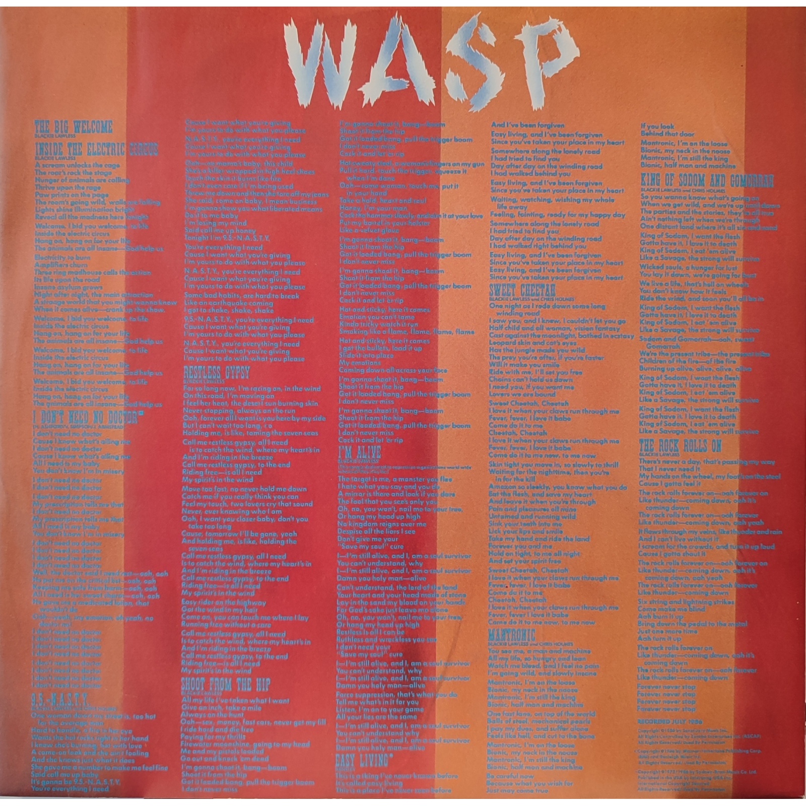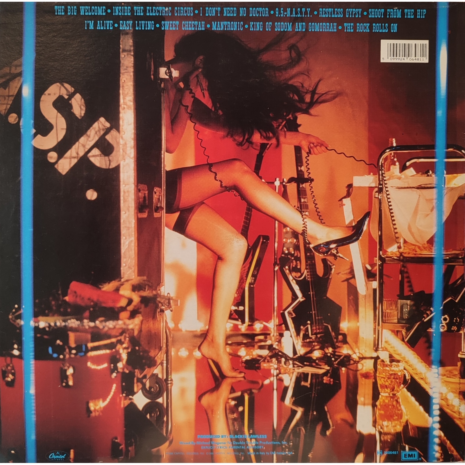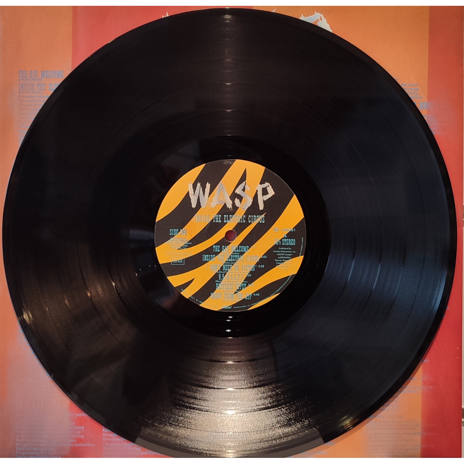 Prima edizione italiana, in vinile di seconda mano, del terzo album in studio del gruppo heavy metal statunitense W.A.S.P.,"Inside the Electric circus".
