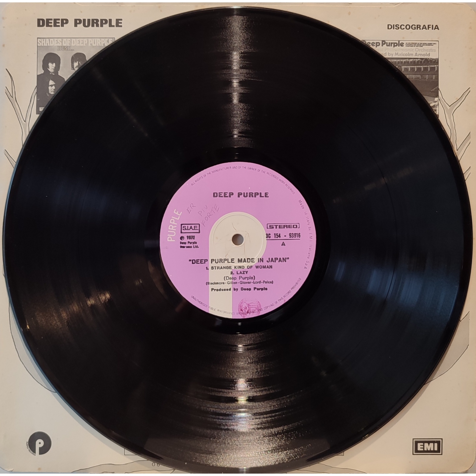 Prima edizione italiana, in vinile di seconda mano, del secondo album live del gruppo hard rock britannico Deep Purple, "Made in Japan".
