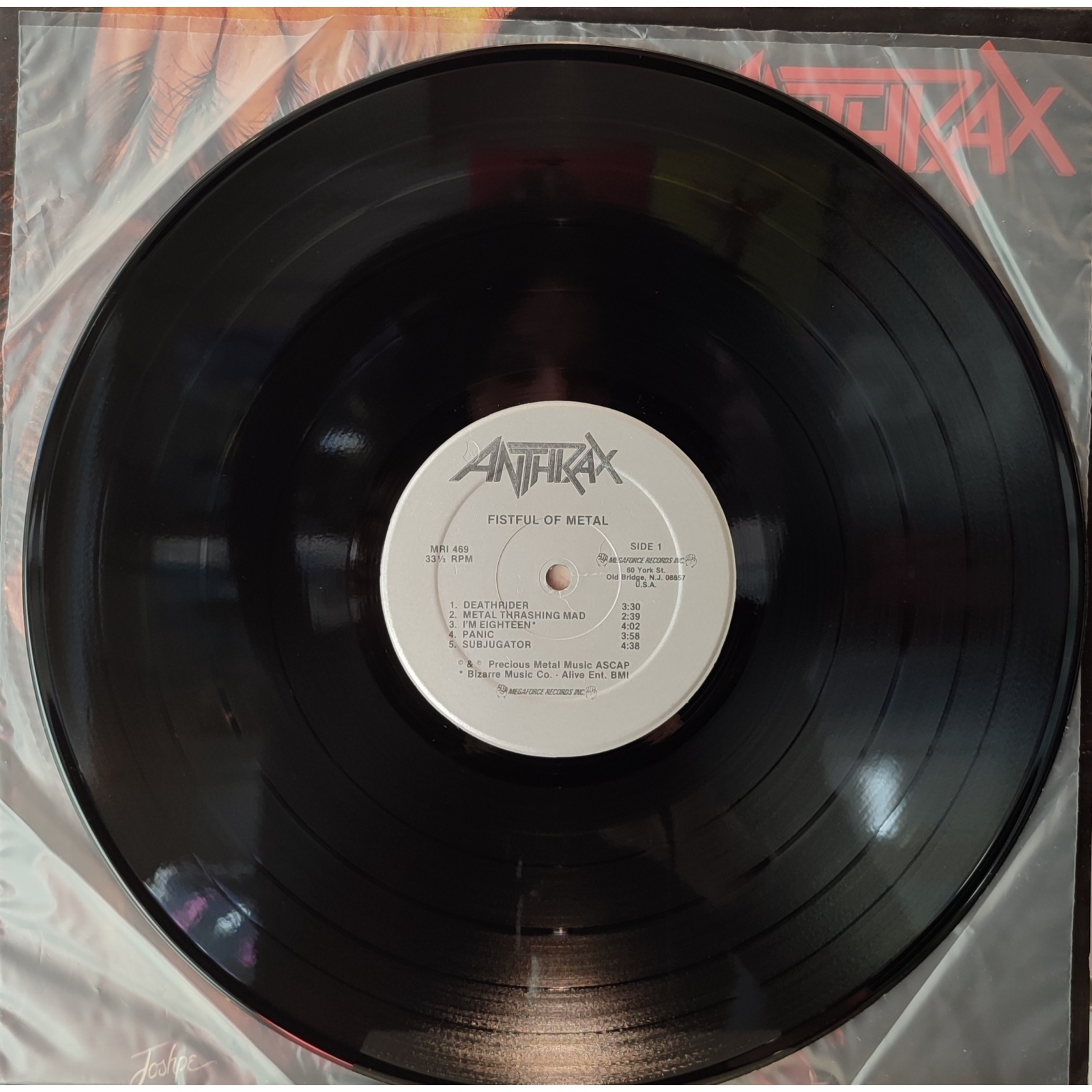 Ristampa americana, in vinile di seconda mano, del primo album in studio del gruppo heavy metal statunitense Anthrax,"Fistful of metal".