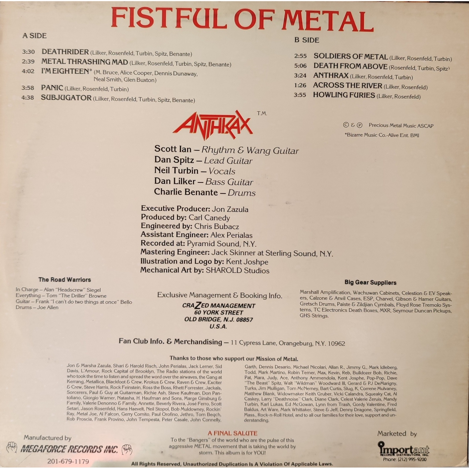 Datato 1984, etichetta Megaforce Records.