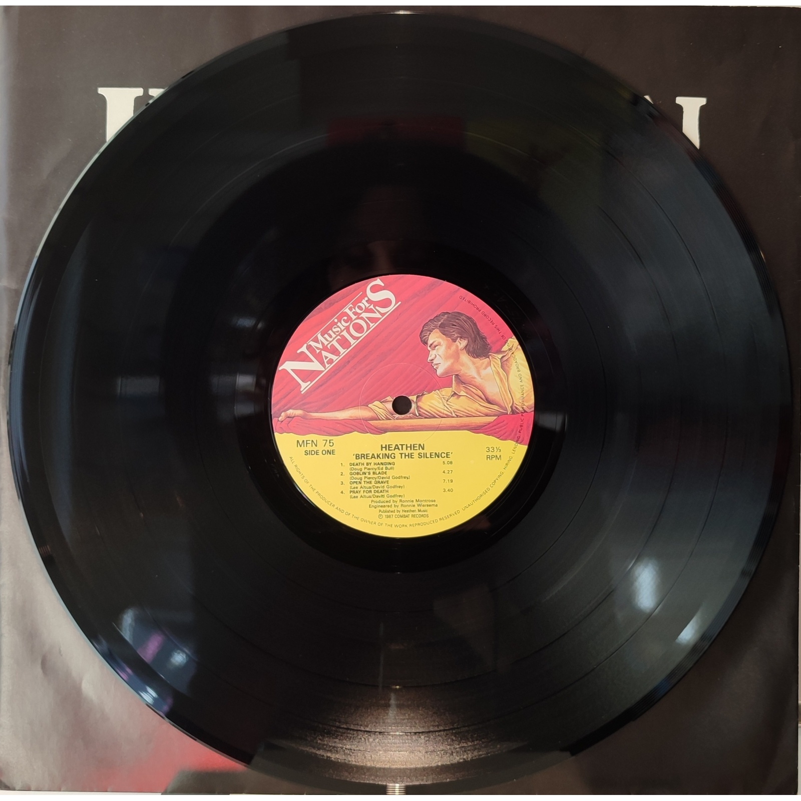 Prima edizione inglese, in vinile di seconda mano, del primo album in studio del gruppo heavy metal e speed metal statunitense Heathen,"Breaking the silence".