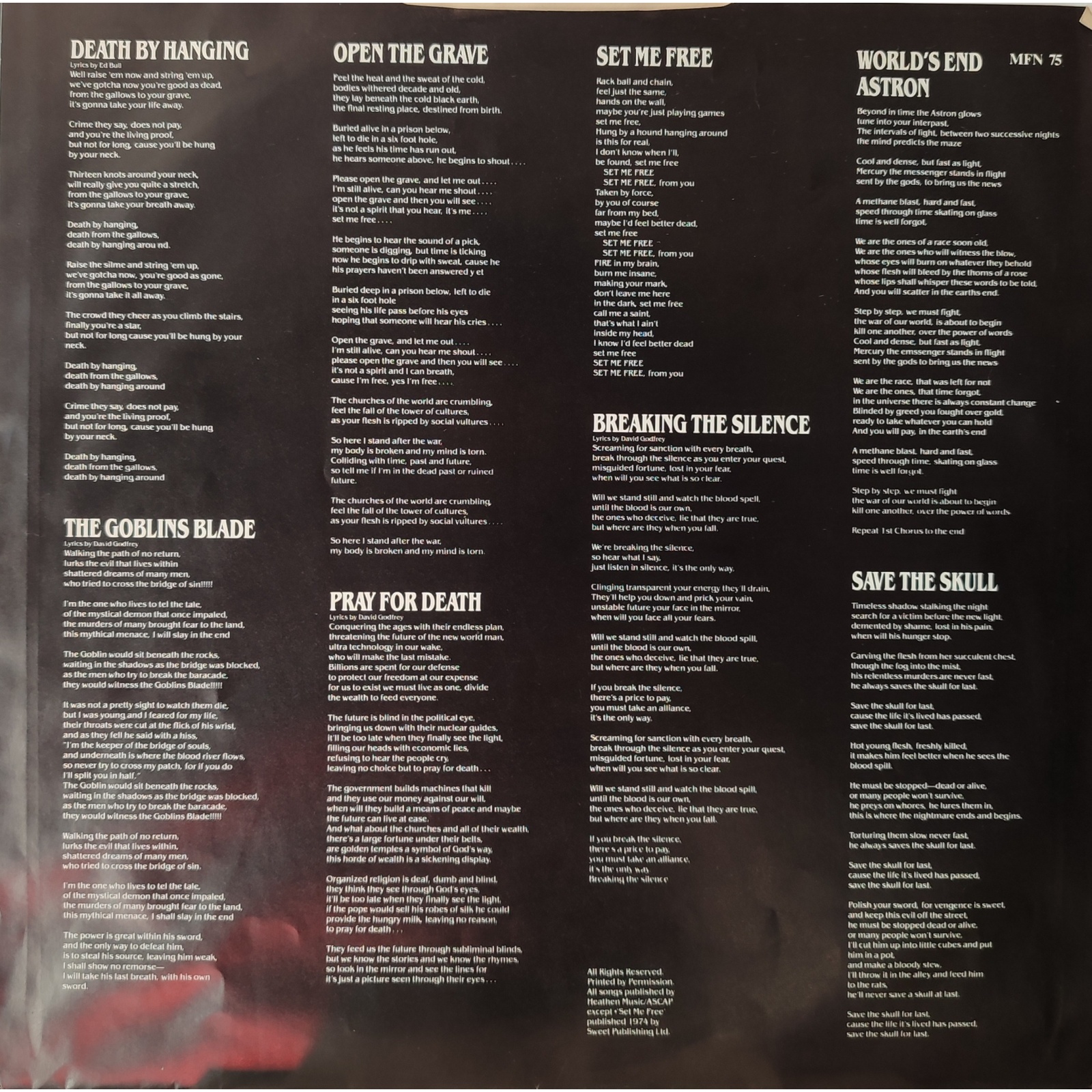 Datato 1987, etichetta Music for Nations, comprensivo di inner sleeve originale con testi.