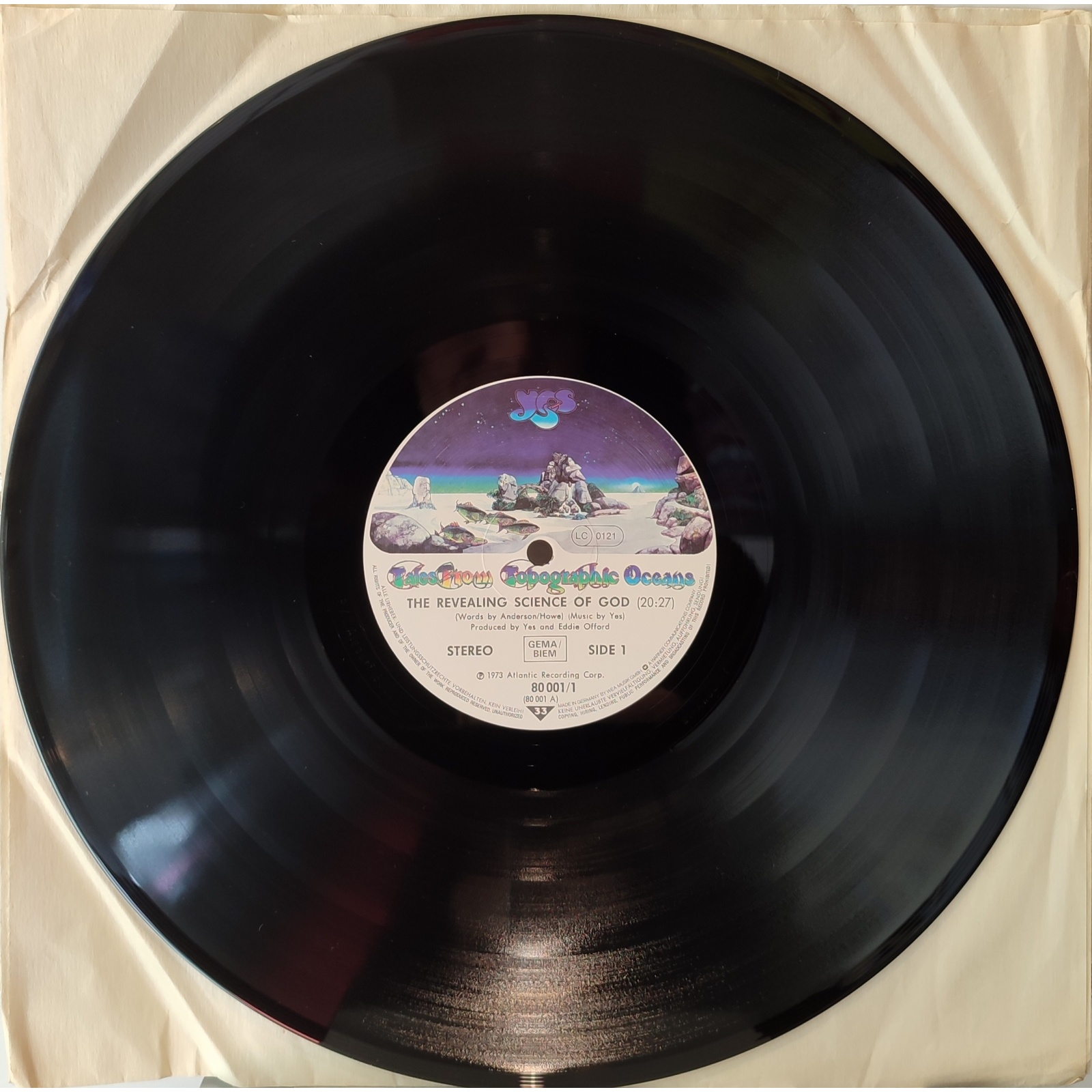 Ristampa tedesca, in vinile di seconda mano, del sesto album in studio del gruppo rock progressive britannico Yes, "Tales from topographic oceans".