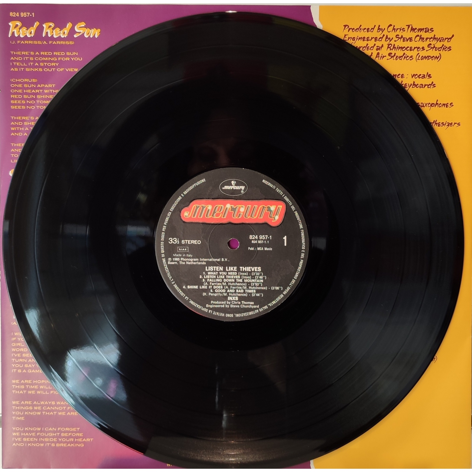 Prima edizione italiana, in vinile di seconda mano, del quinto album in studio del gruppo pop rock australiano INXS, "Listen like thieves".