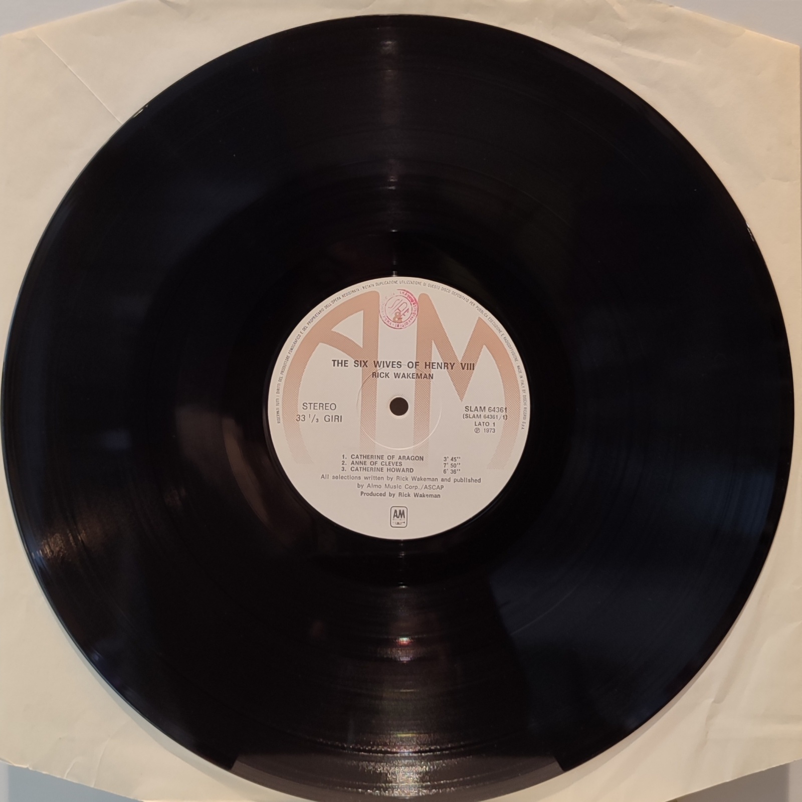 Ristampa italiana, in vinile di seconda mano, del primo album da solista del tastierista progressive Rick Wakeman,"The six wives of Henry VIII".