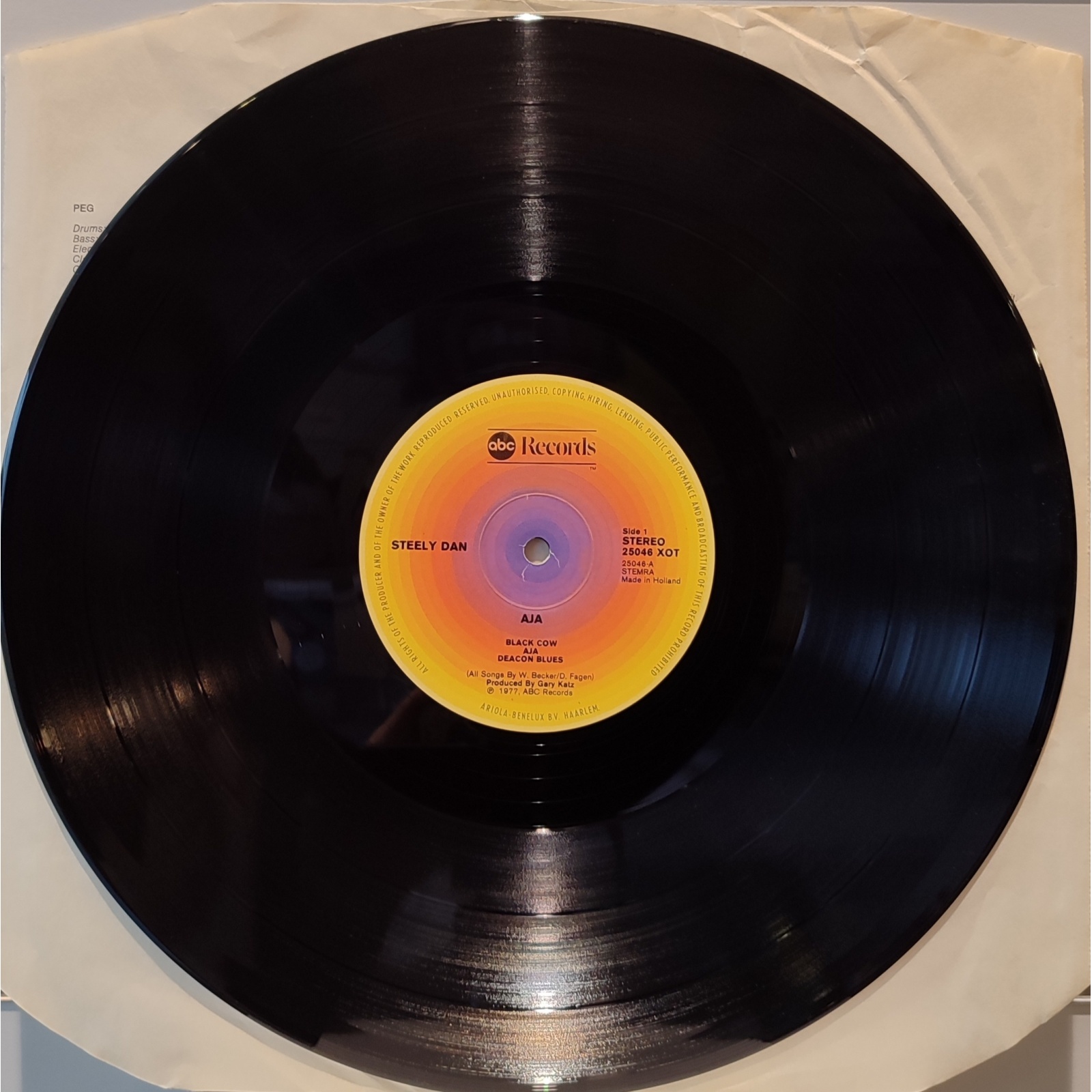 Prima edizione benelux, in vinile di seconda mano, del sesto album in studio del gruppo rock fusion statunitense Steely Dan,"Aja".