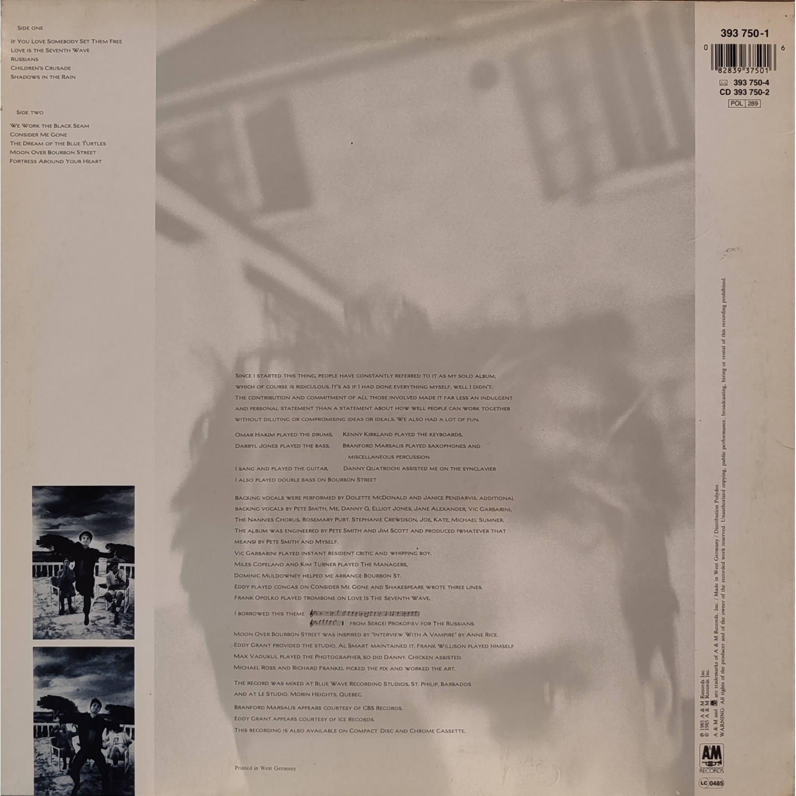 Datato 1985, etichetta A&M Records, comprensivo di inner sleeve originale e inserto testi.