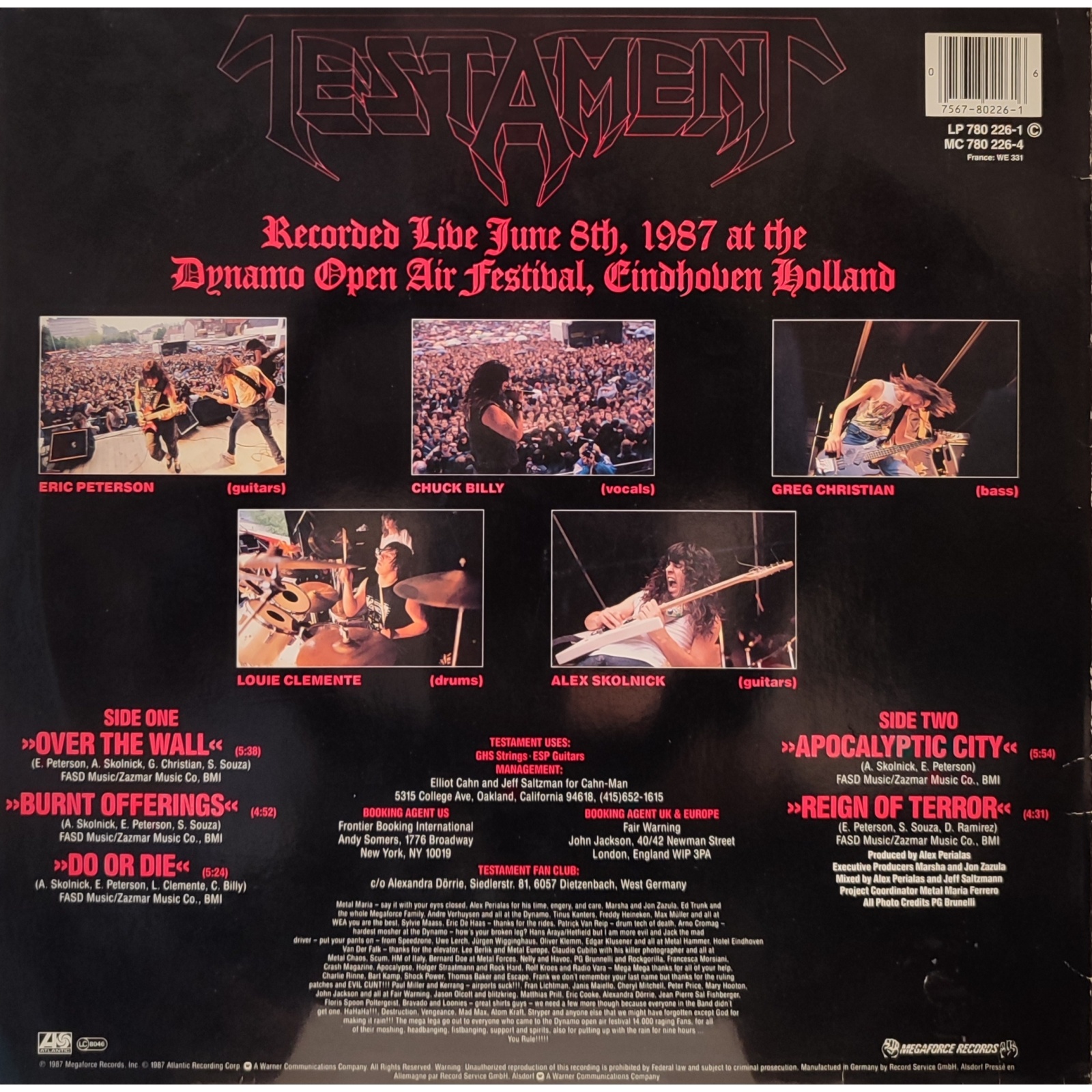 Prima edizione tedesca, in vinile di seconda mano, dell' EP "Live at Eindhoven" della band heavy metal statunitense Testament.