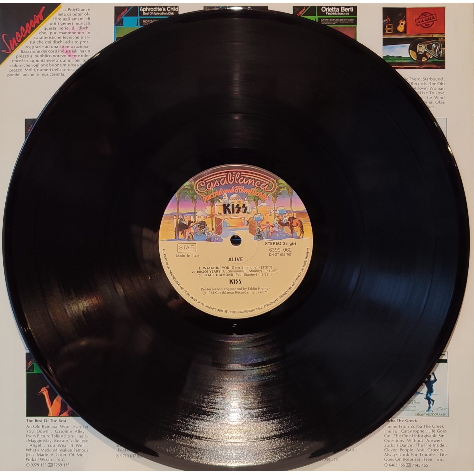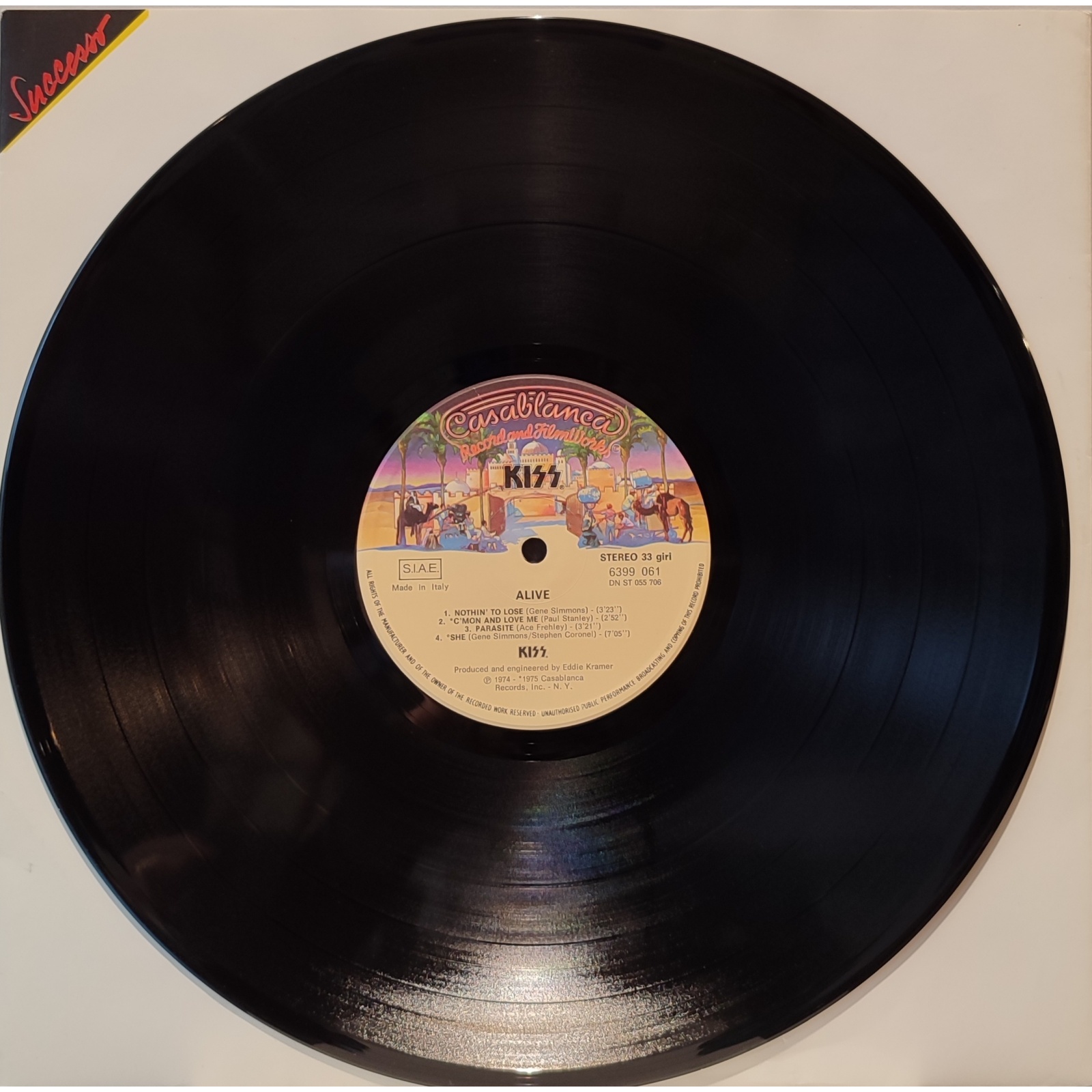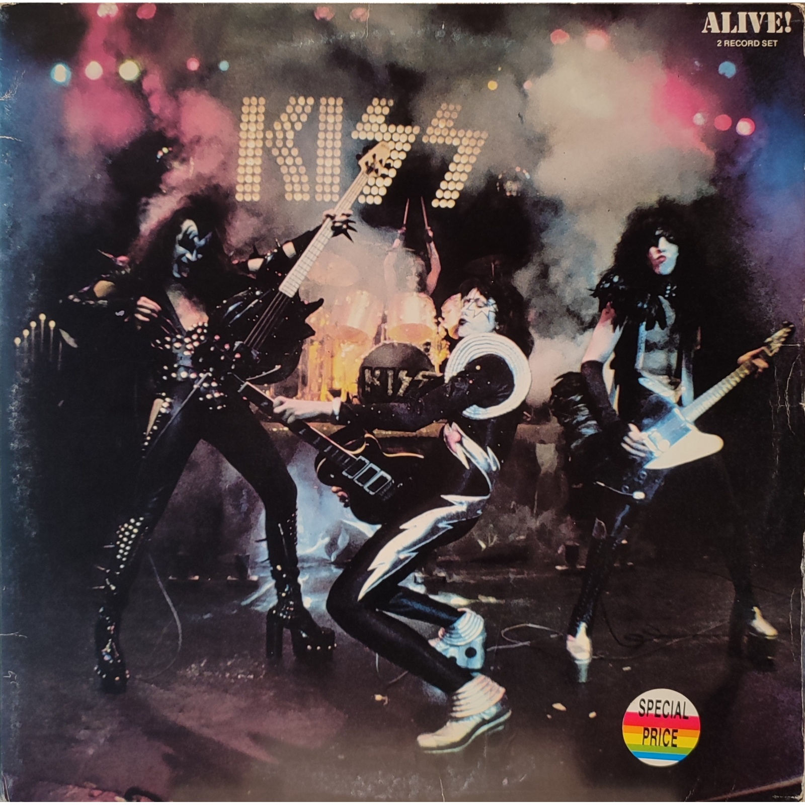 Ristampa italiana, in vinile di seconda mano, del primo live della band hard rock statunitense Kiss,"Alive!".