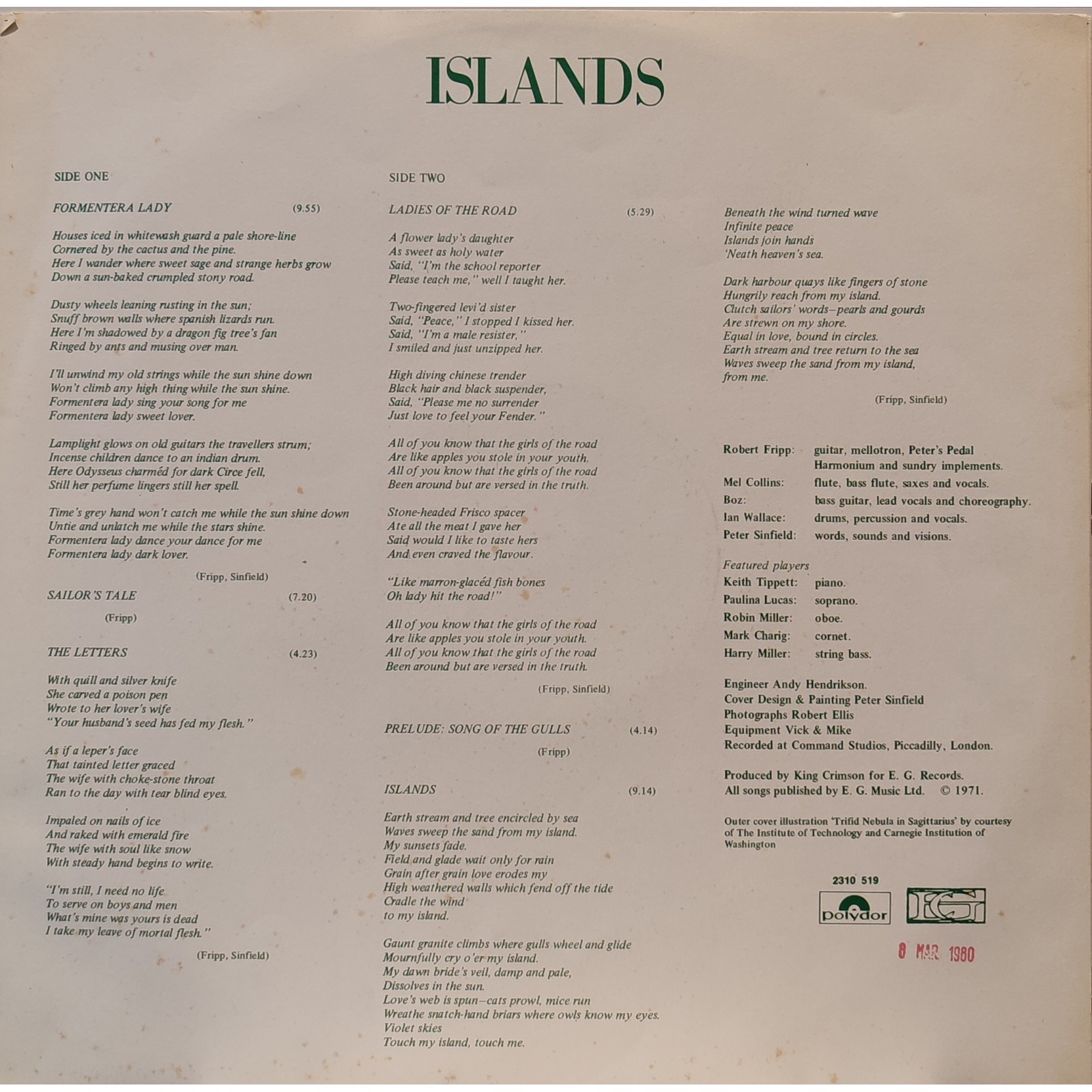 Ristampa italiana, in vinile di seconda mano, del quarto album in studio del gruppo progressive britannico King Crimson,"Islands".