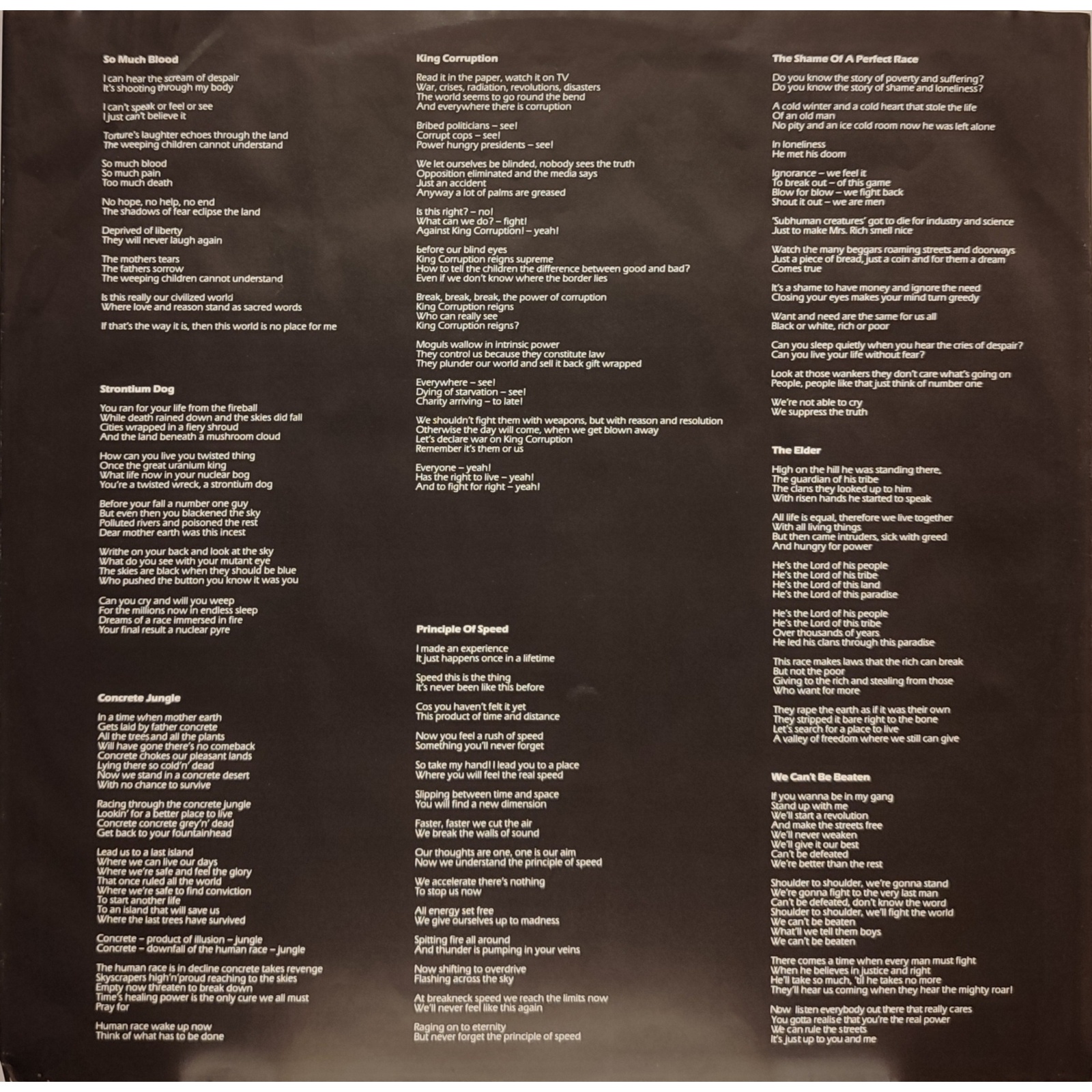 Datato 1989, etichetta Frontrow, comprensivo di inner sleeve originale con testi, inserto merchandising e adesivo originale sul fronte.