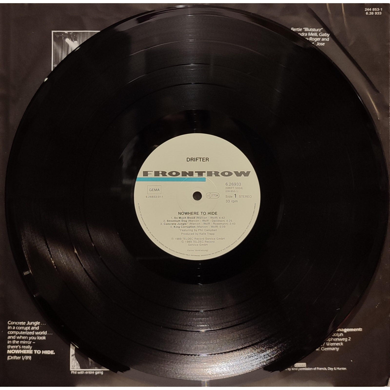 Prima edizione tedesca, in vinile di seconda mano, dell'album "Nowhere to hide" del gruppo heavy metal Drifter.