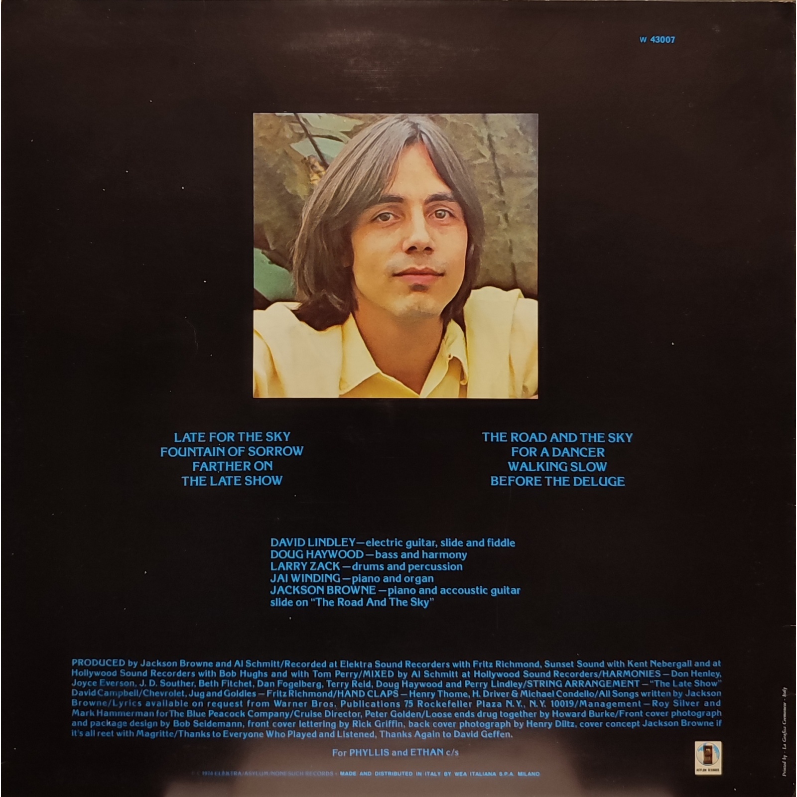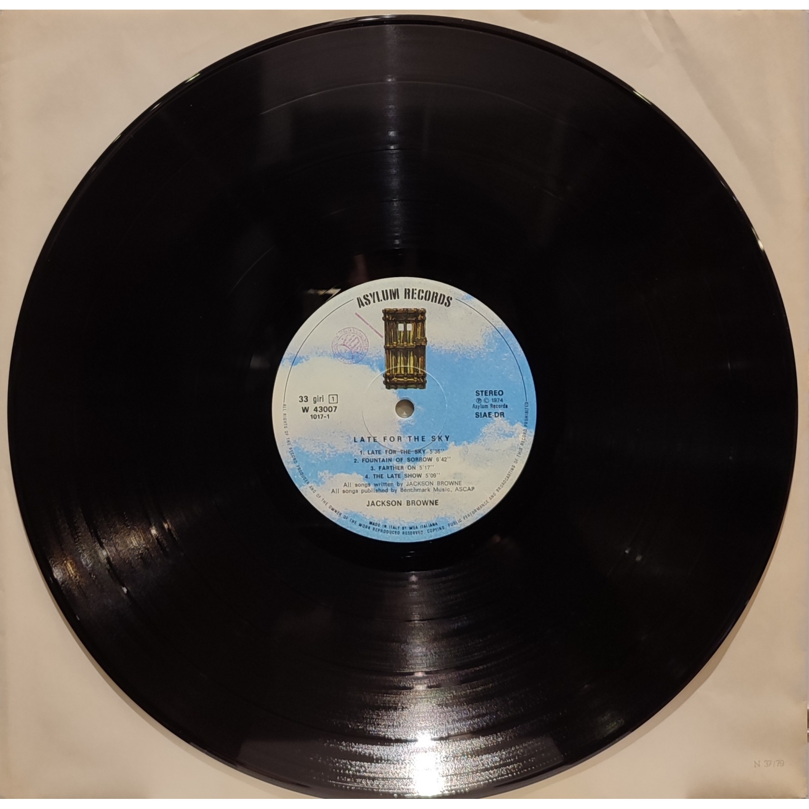 Ristampa italiana, in vinile di seconda mano, del terzo album in studio del cantautore statunitense Jackson Browne, "Late for the sky".
