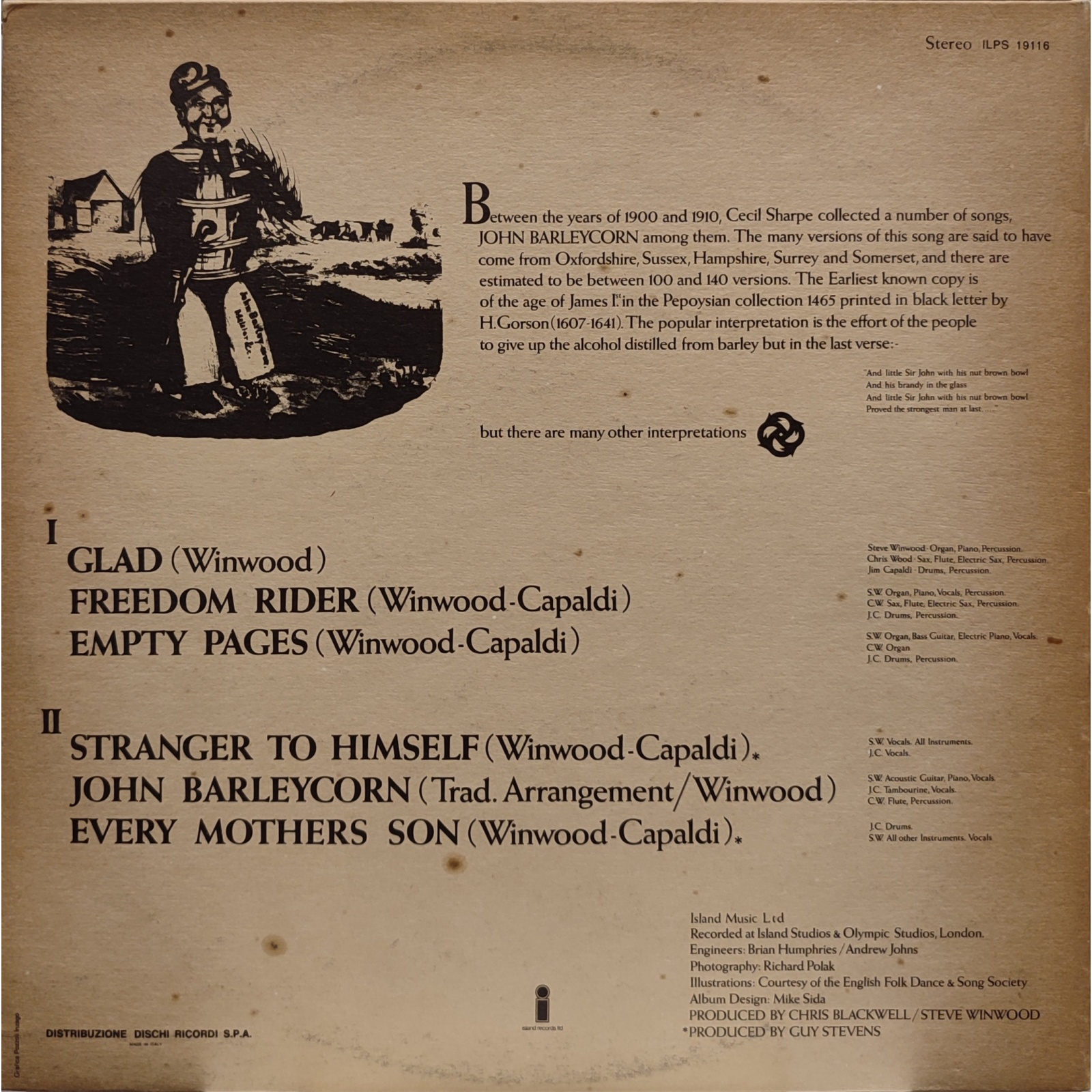 Ristampa italiana, in vinile di seconda mano, dell'album "John Barleycorn must die" del gruppo progressive rock inglese Traffic.