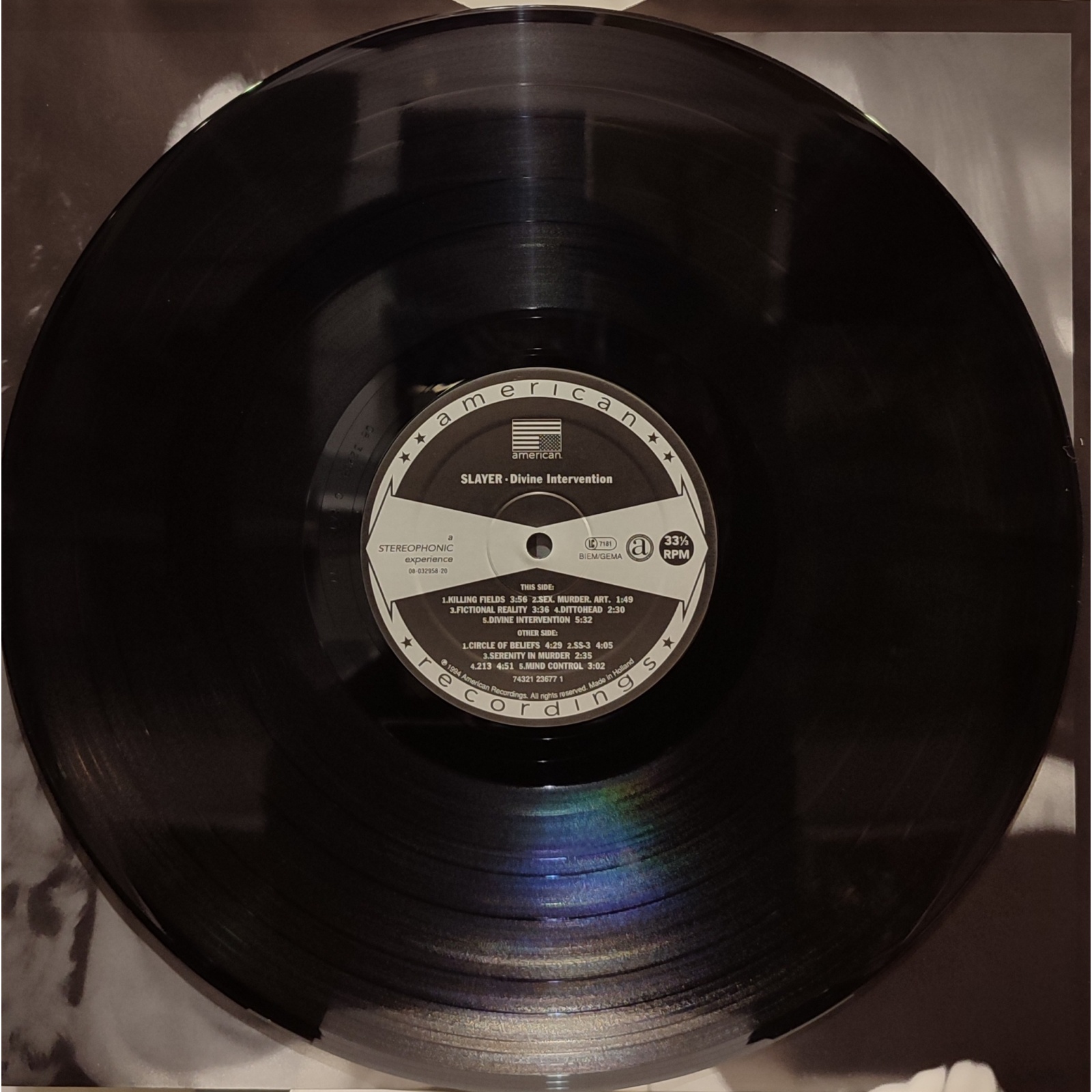 Prima edizione europea, in vinile di seconda mano, del sesto album in studio del gruppo heavy metal statunitense Slayer,"Divine intervention".