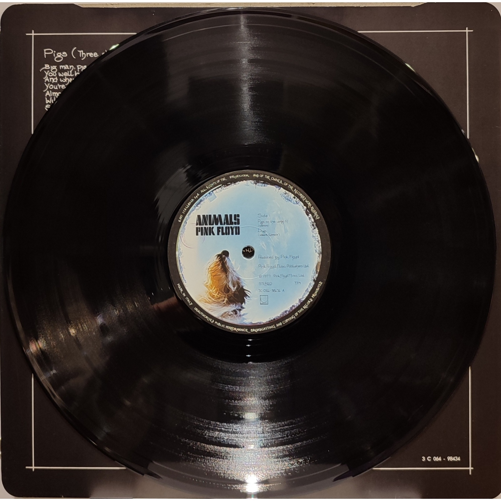 Prima edizione italiana, in vinile di seconda mano, del decimo album in studio del gruppo rock progressive britannico Pink Floyd,"Animals".