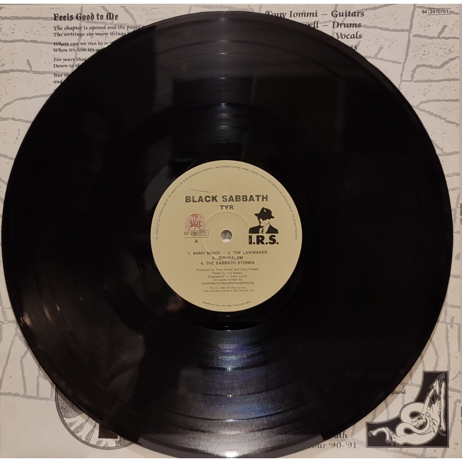Prima edizione italiana, in vinile di seconda mano, dell'album "Tyr" del gruppo hard rock heavy metal britannico Black Sabbath.