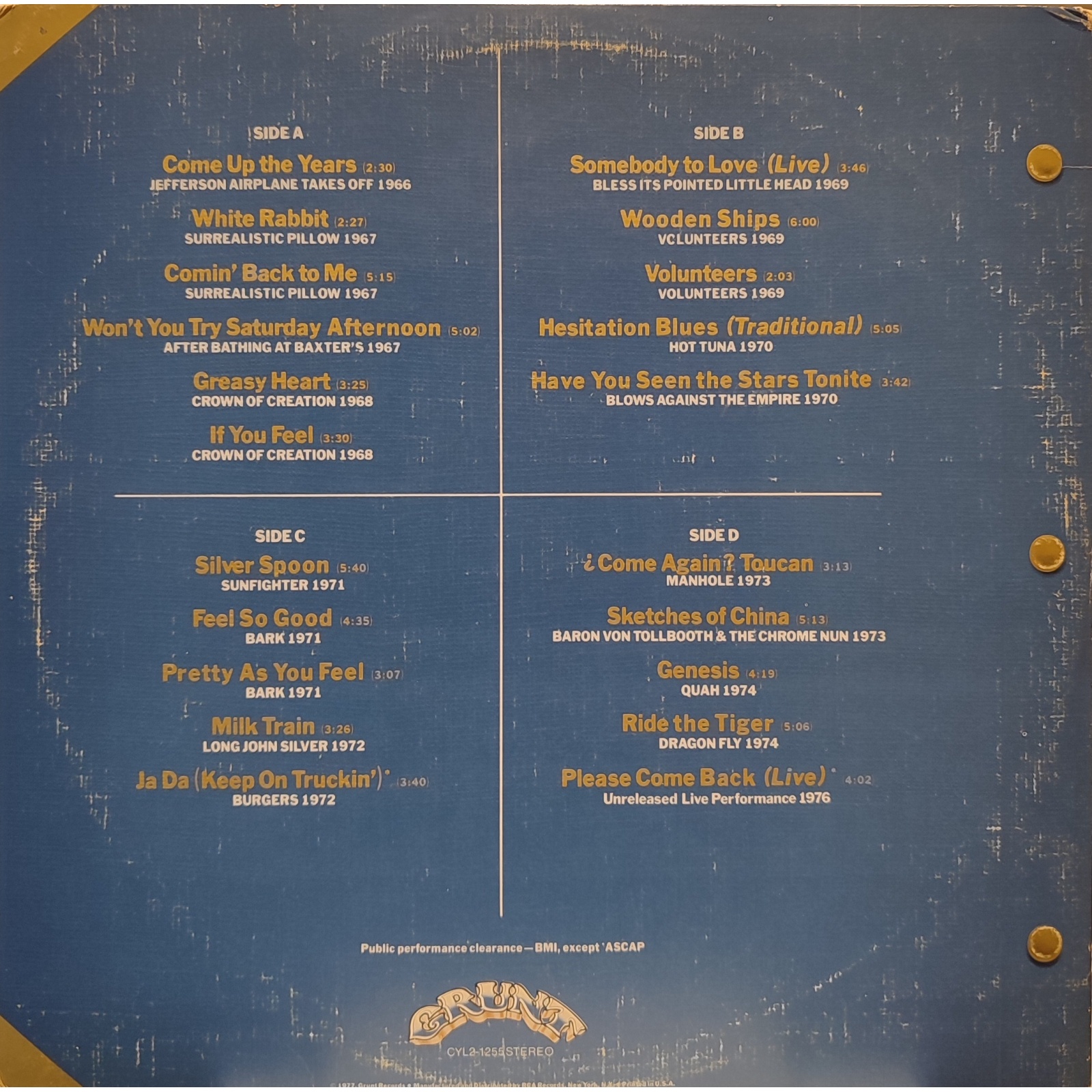 Si tratta di una raccolta di brani dal 1966 al 1976, per questo contiene anche canzoni degli Hot Tuna, Jefferson Starship, Paul Kantner, Grace Slick e Jorma Kaukonen.