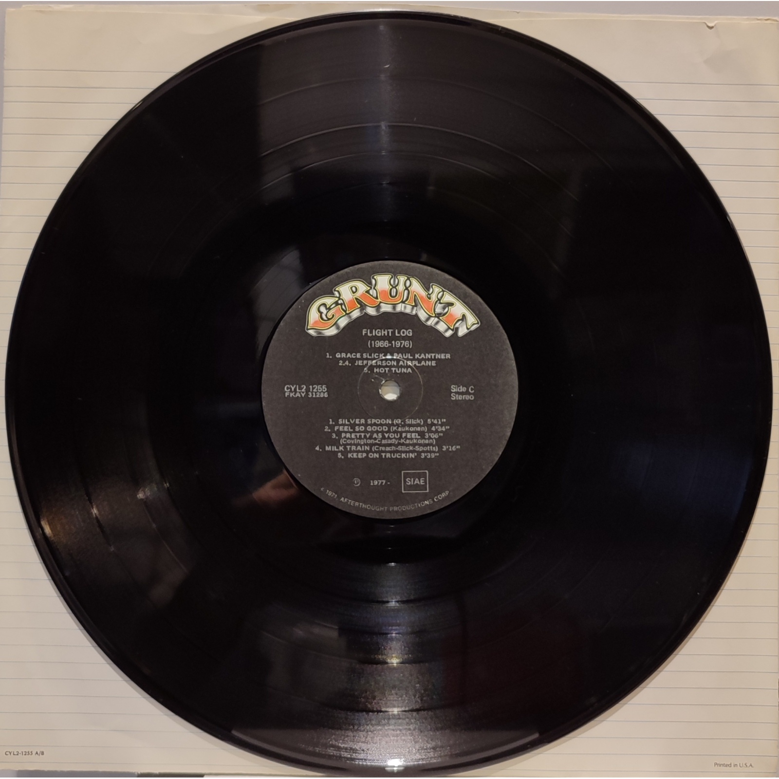 Prima edizione italiana, in vinile di seconda mano, della raccolta "Flight log" del gruppo rock psichedelico statunitense Jefferson Airplane.