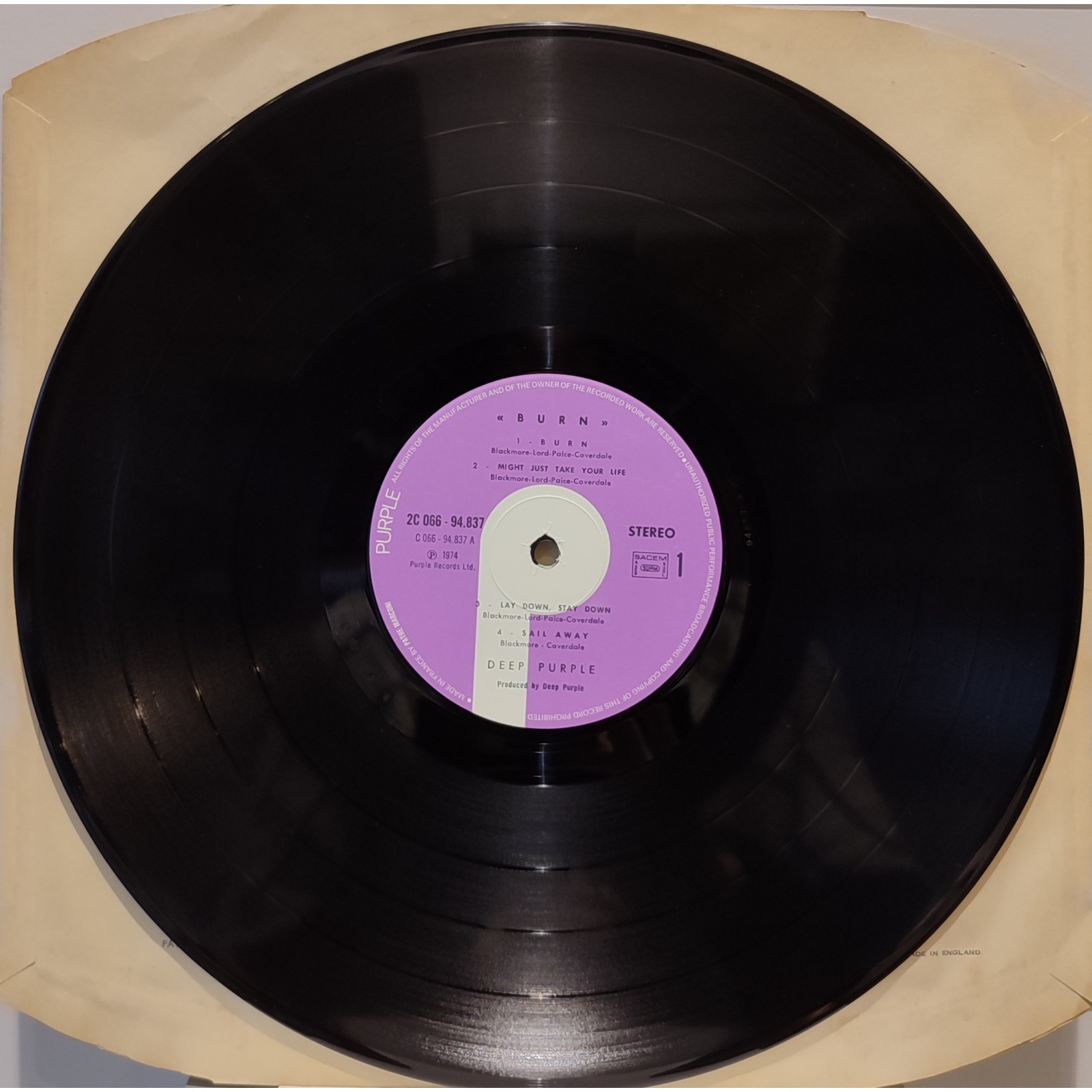 Prima edizione francese, in vinile di seconda mano, dell'ottavo album in studio del gruppo hard rock britannico Deep Purple,"Burn".