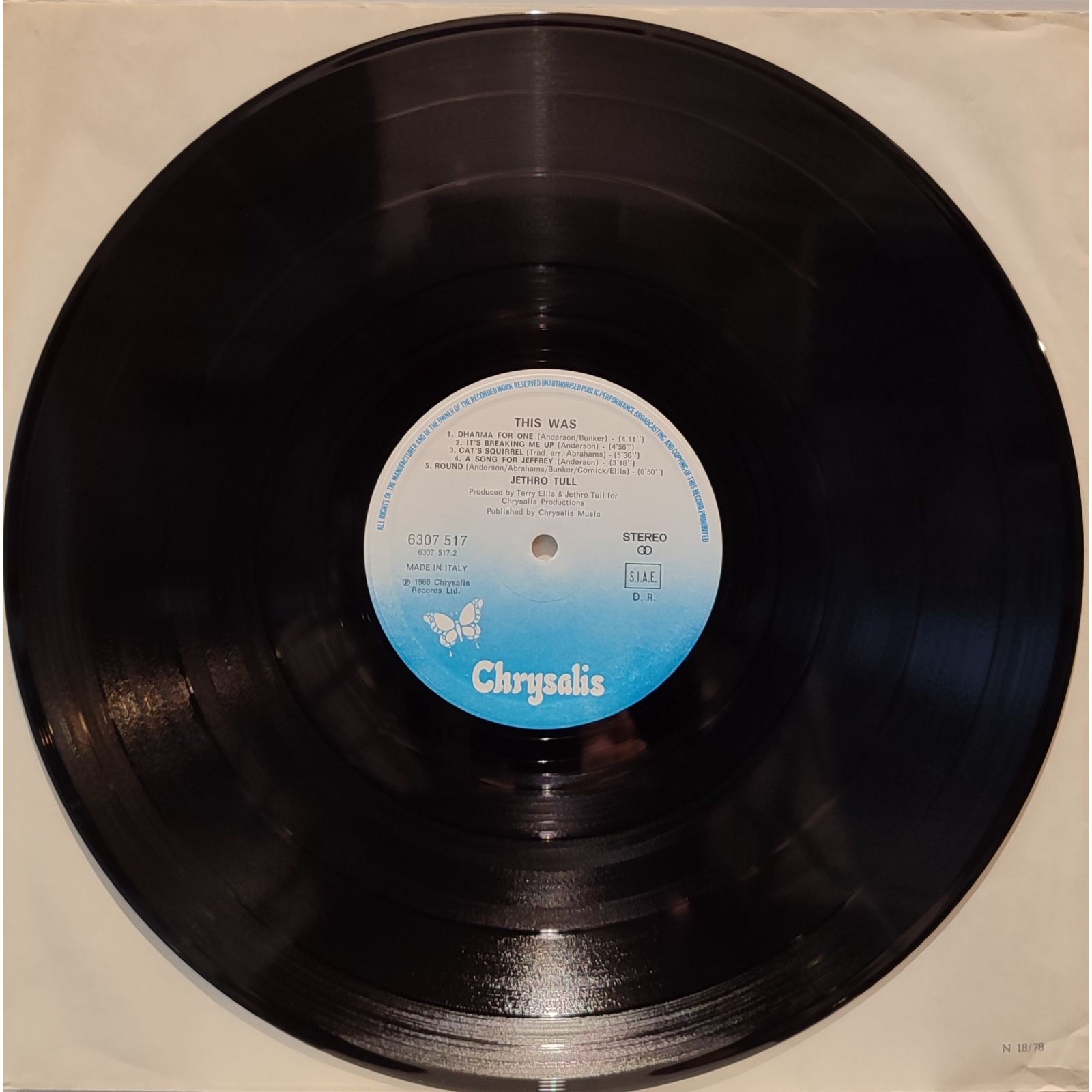 Ristampa italiana, in vinile di seconda mano, del primo album in studio del gruppo rock progressive britannico Jethro Tull,"This was".