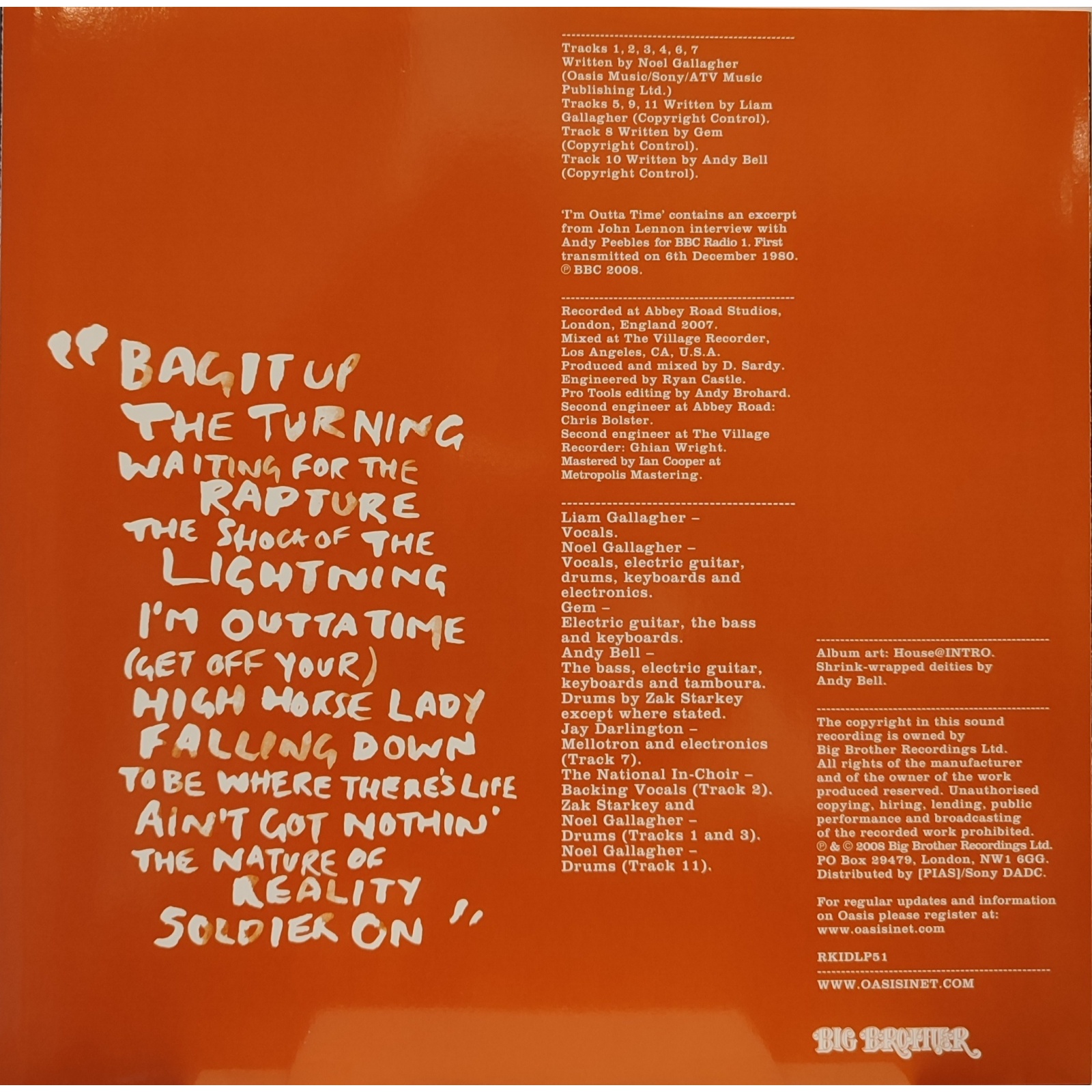 Datato 2008, etichetta Big Brother, doppio LP gatefold comprensivo di inner sleeve originali.