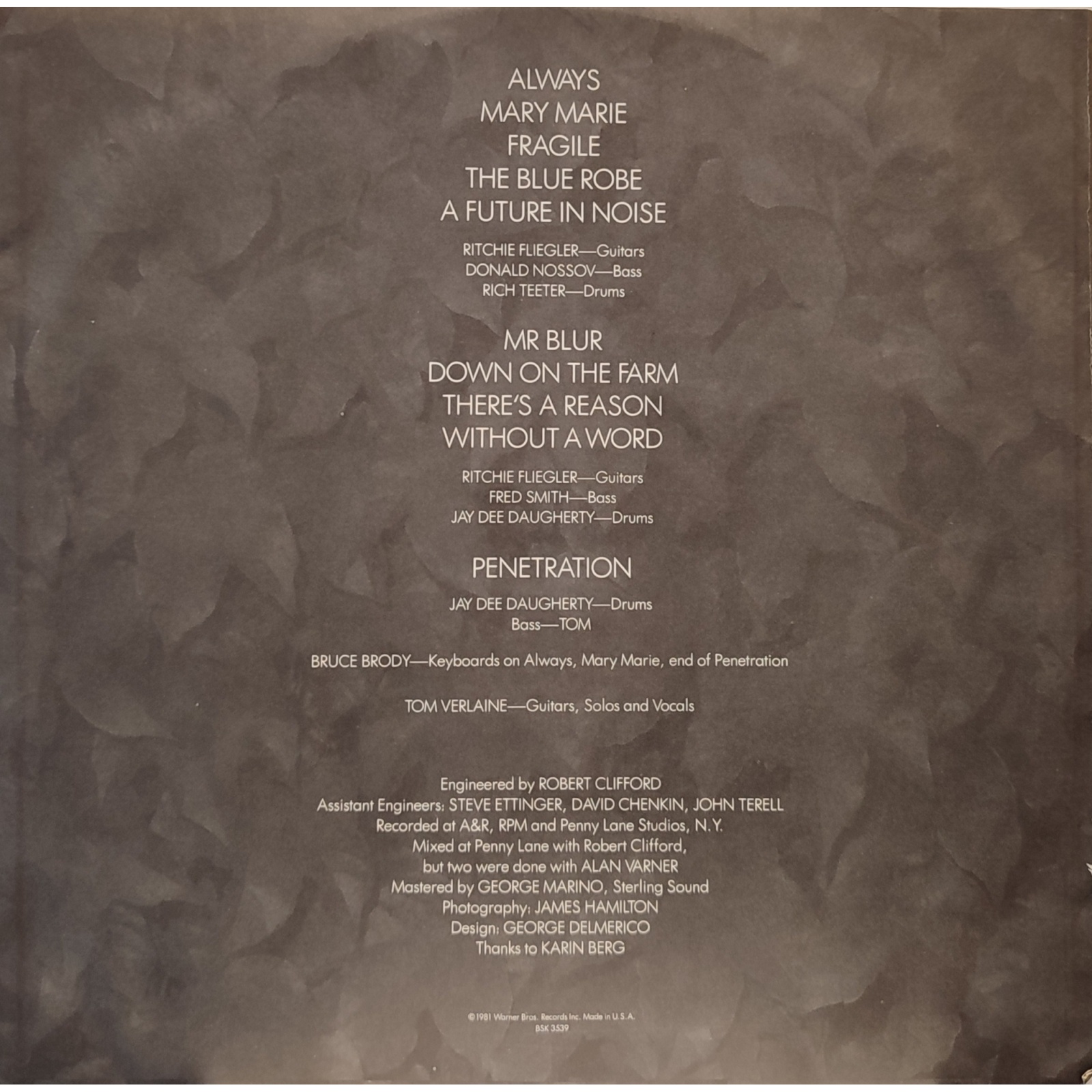 In seguito, con il bassista Fred Smith in sostituzione di Hell, si stabilizzò il gruppo dei Television, eredi delle sonorità dei Velvet Underground, di cui si ricorda soprattutto l'epocale album "Marquee Moon" del 1977, considerato una pietra miliare della neonata new wave.