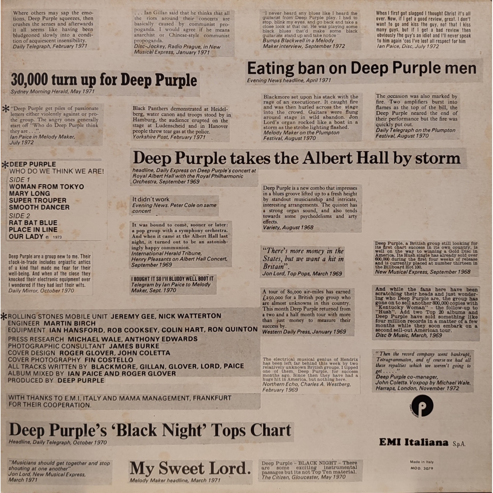 L'album contiene anche il singolo "Woman from Tokyo", che è rimasto un classico dalla band, eseguito frequentemente nel corso dei tour successivi, e portato in scena anche dalla Ian Gillan Band.