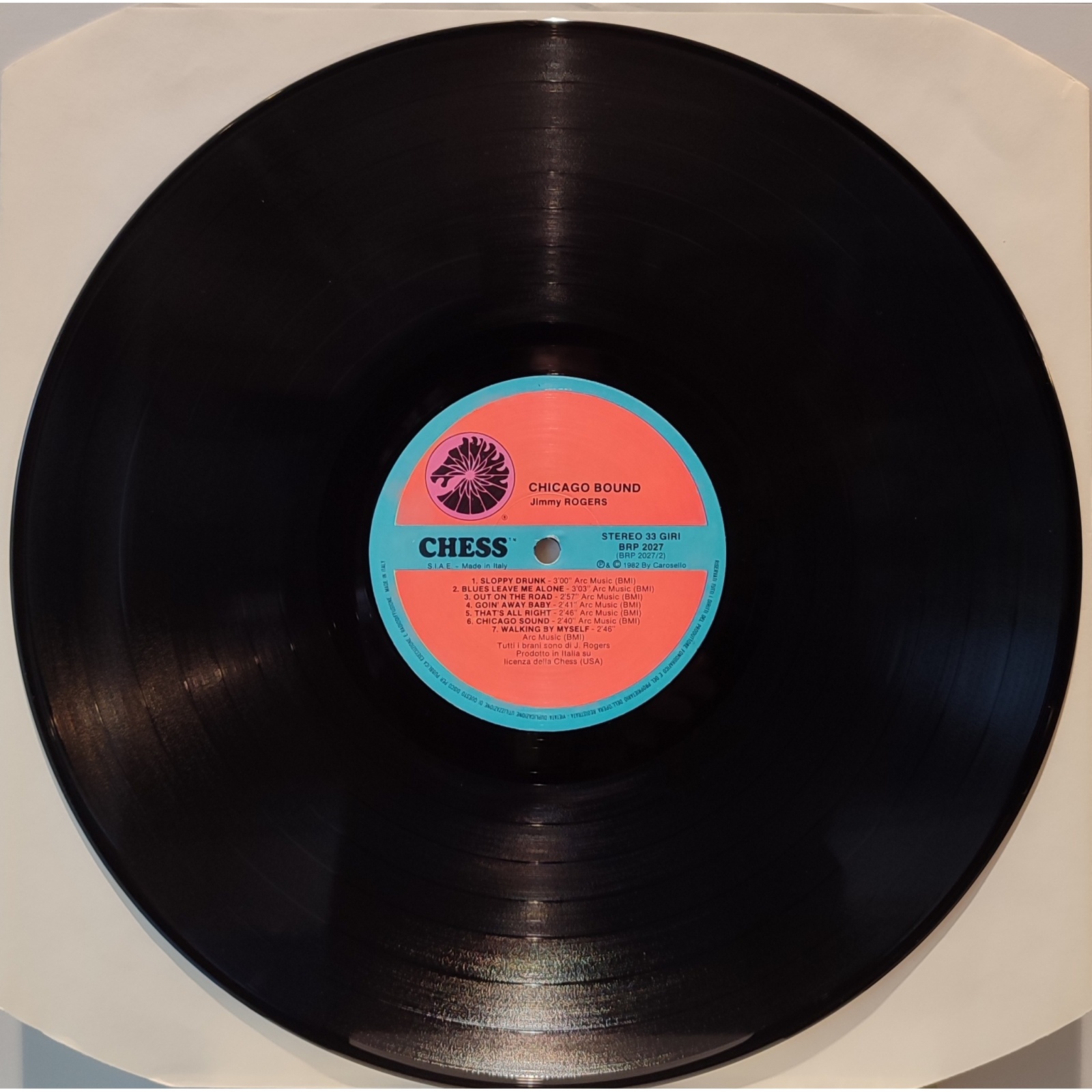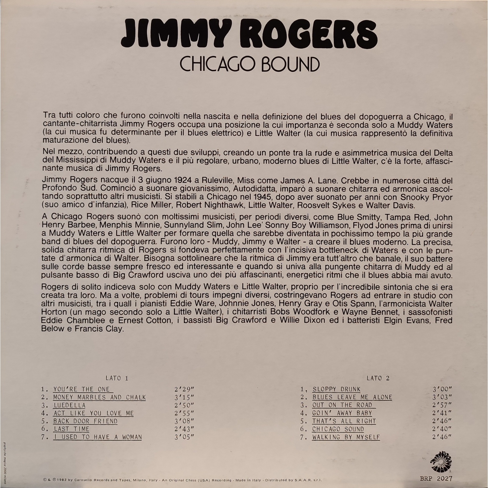 Prima edizione italiana, in vinile di seconda mano, della raccolta "Chicago bound" del cantante e chitarrista blues statunitense Jimmy Rogers.