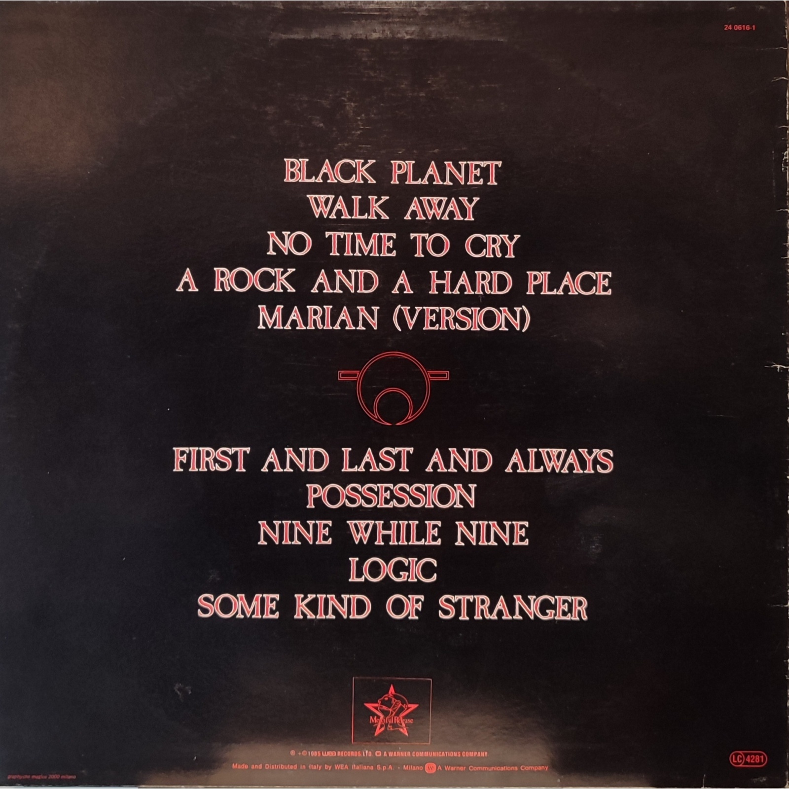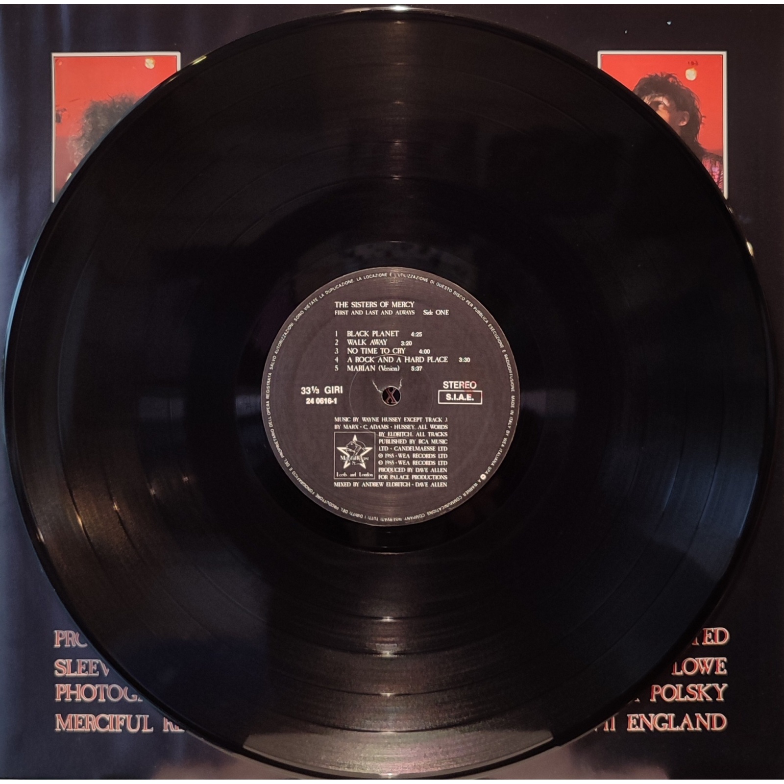 Prima edizione italiana, in vinile di seconda mano, del primo album in studio del gruppo post punk The Sisters of Mercy,"First and Last and Always".
