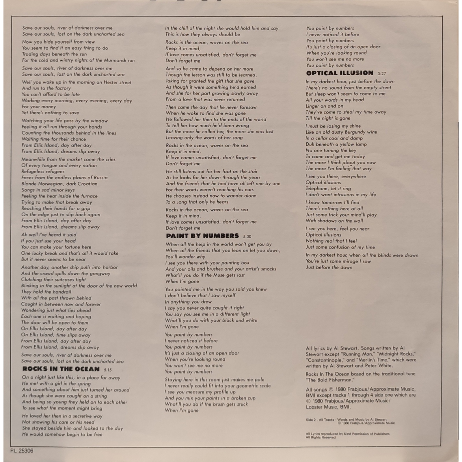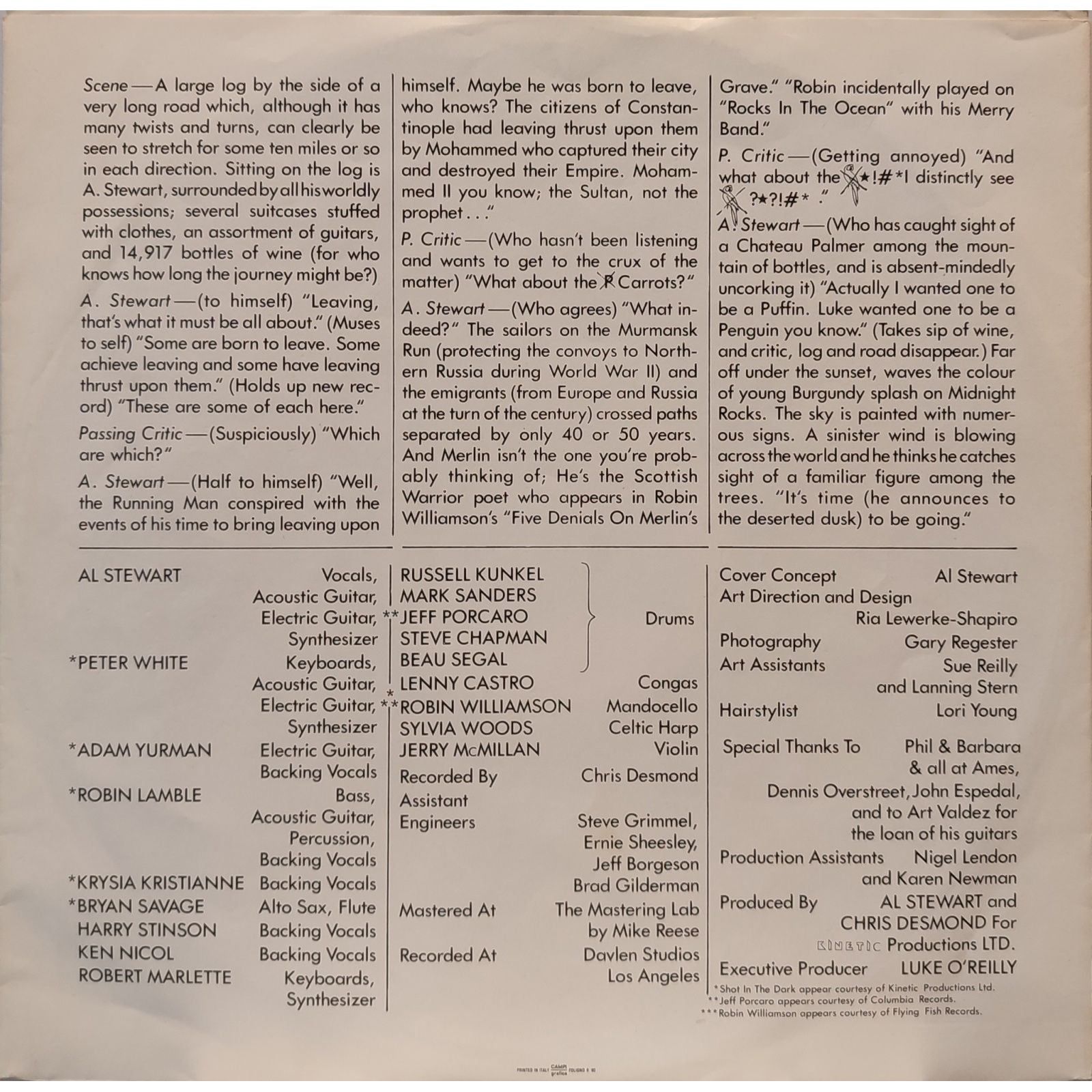 Il progetto grafico della copertina è di Al Stewart.
