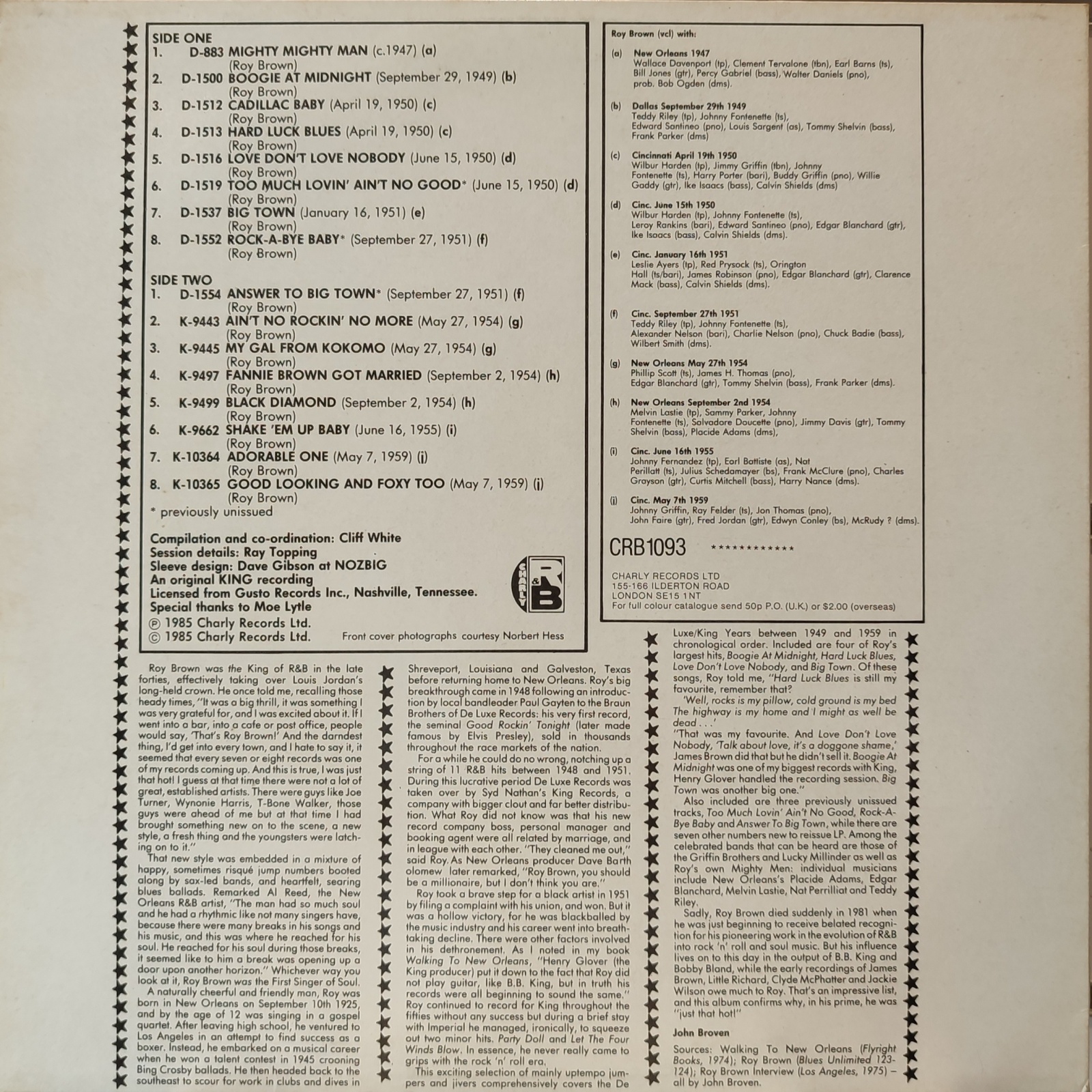 Prima edizione inglese in vinile di seconda mano della raccolta "Boogie at midnight" di Roy Brown.