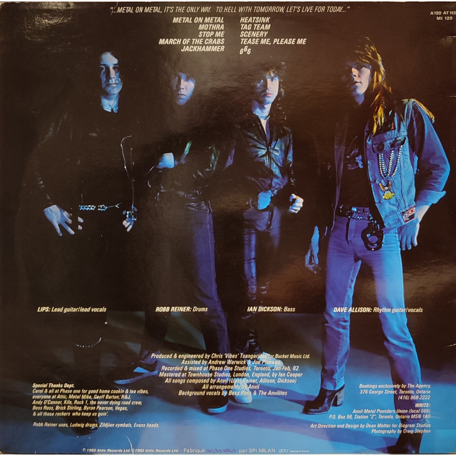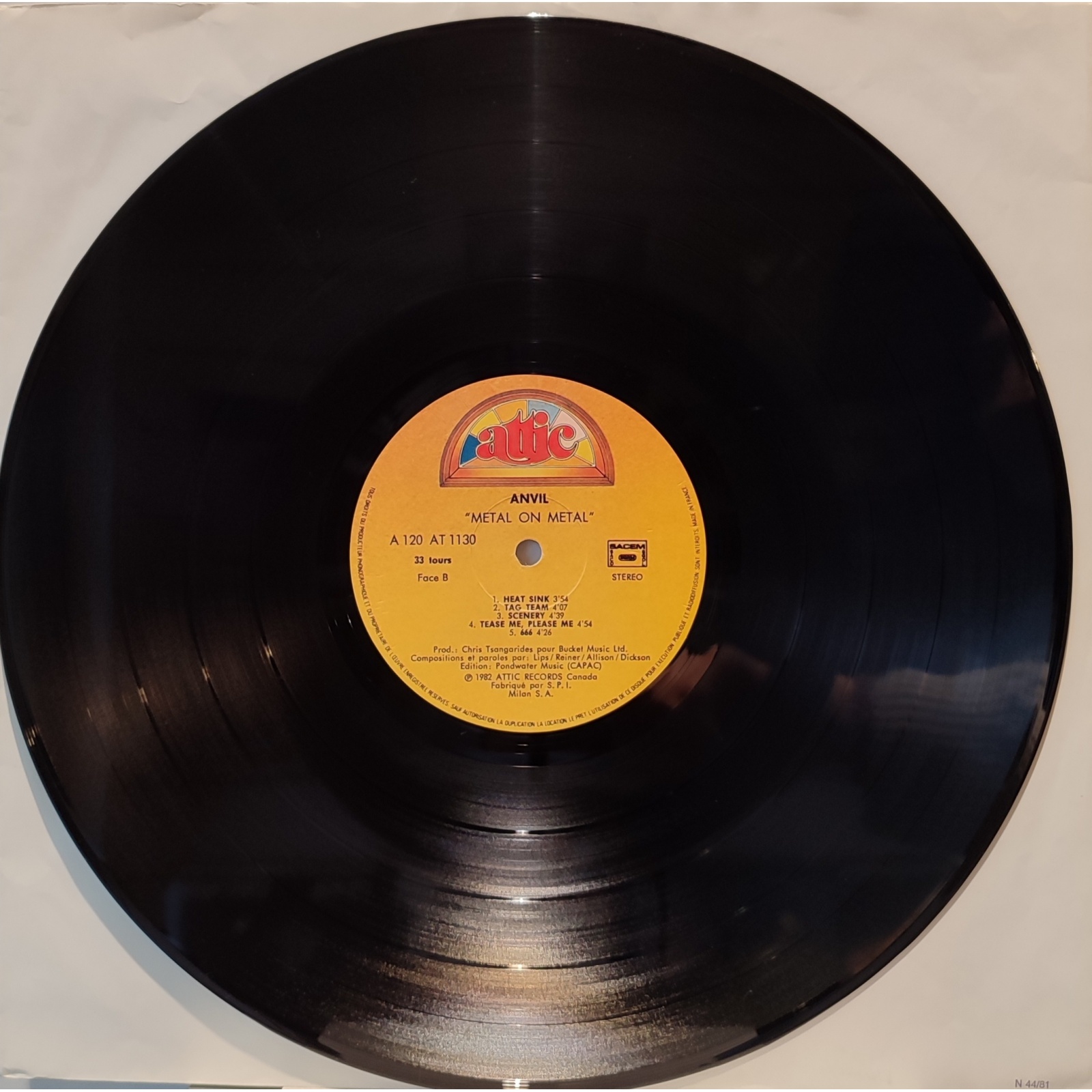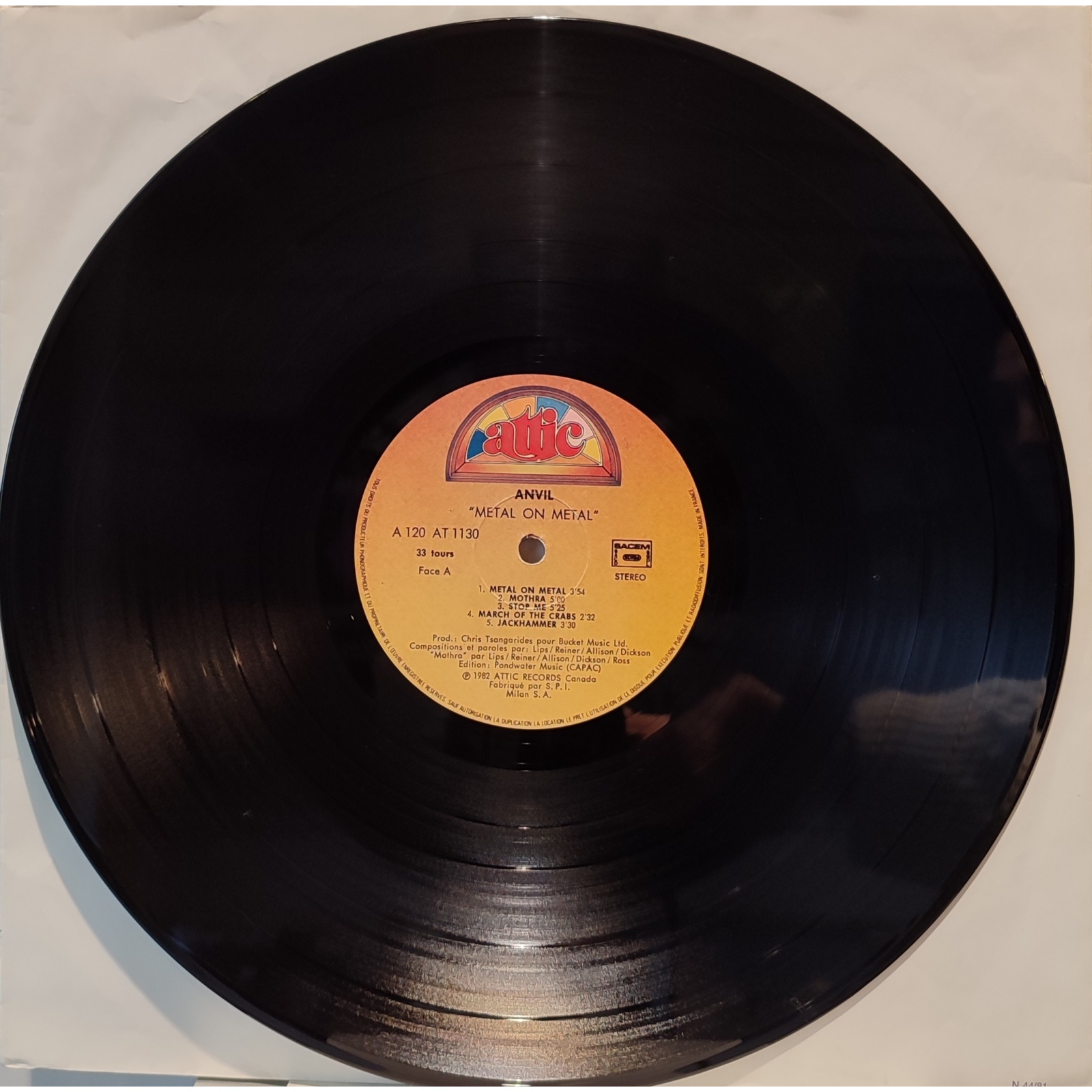 Prima edizione francese, in vinile di seconda mano, del secondo album in studio del gruppo heavy metal canadese Anvil,"Metal on metal".